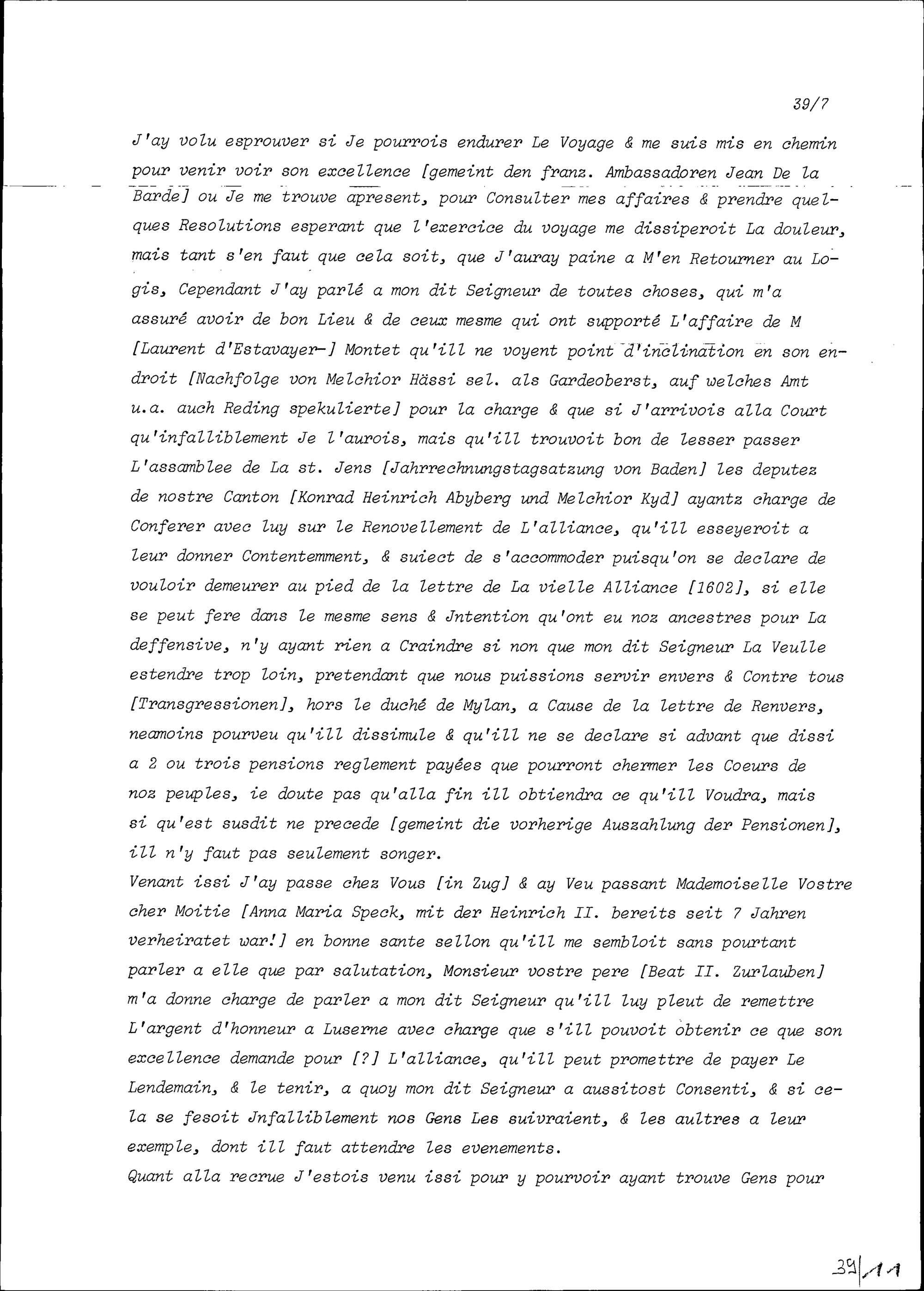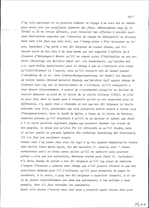Schreiben von Wolfgang Dietrich Theodor Reding an Heinrich II. Zurlauben, Gardehauptmann, am Hof in Paris