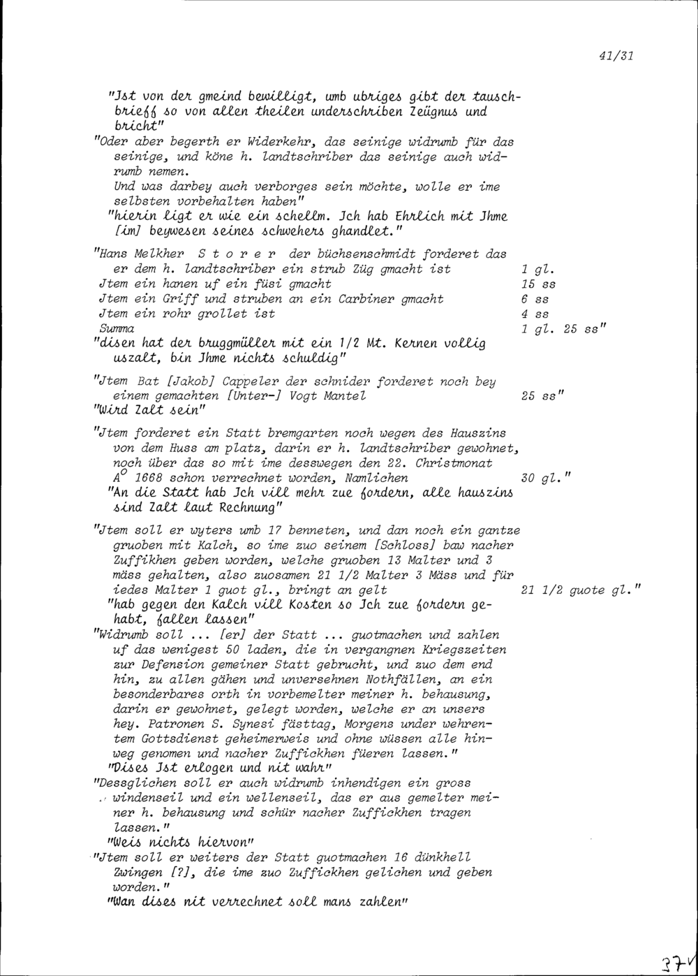 Schuldenverzeichnis von Heinrich Ludwig Zurlauben, Altlandschreiber der Freien Ämter, welches im Auftrage von Johann Melchior Kolin, Landschreiberstatthalter, aufgezeichnet und von Bremgarten nach Zug überschickt wurde