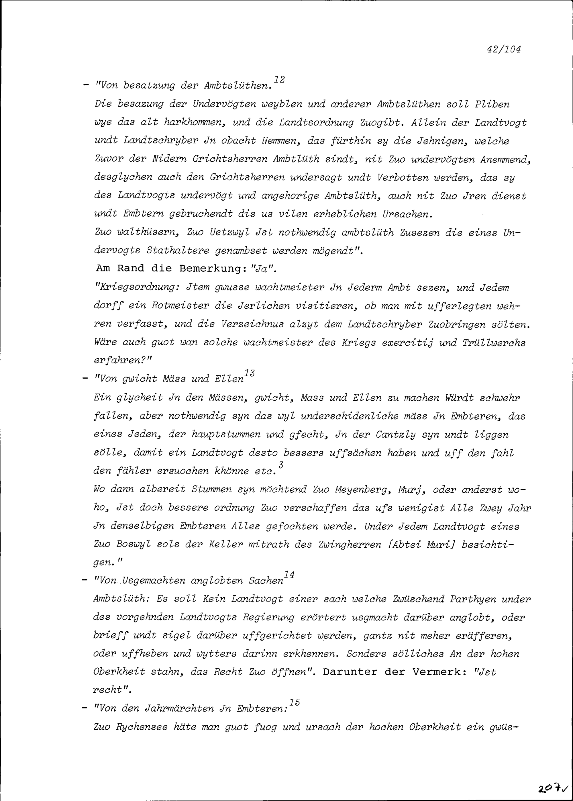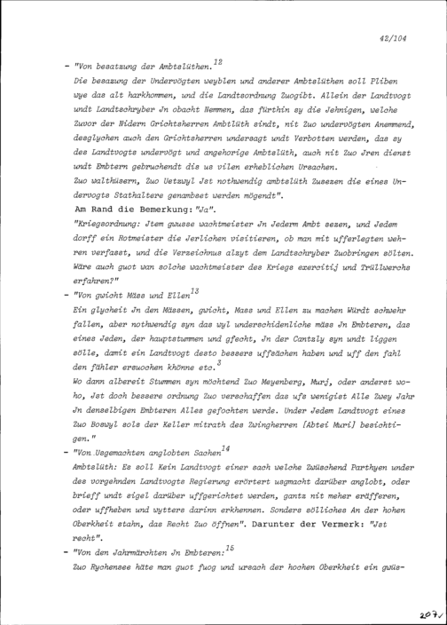 Vorschläge und Anmerkungen von Beat II. Zurlauben zu einer Verwaltungsreform in den Freien Ämter