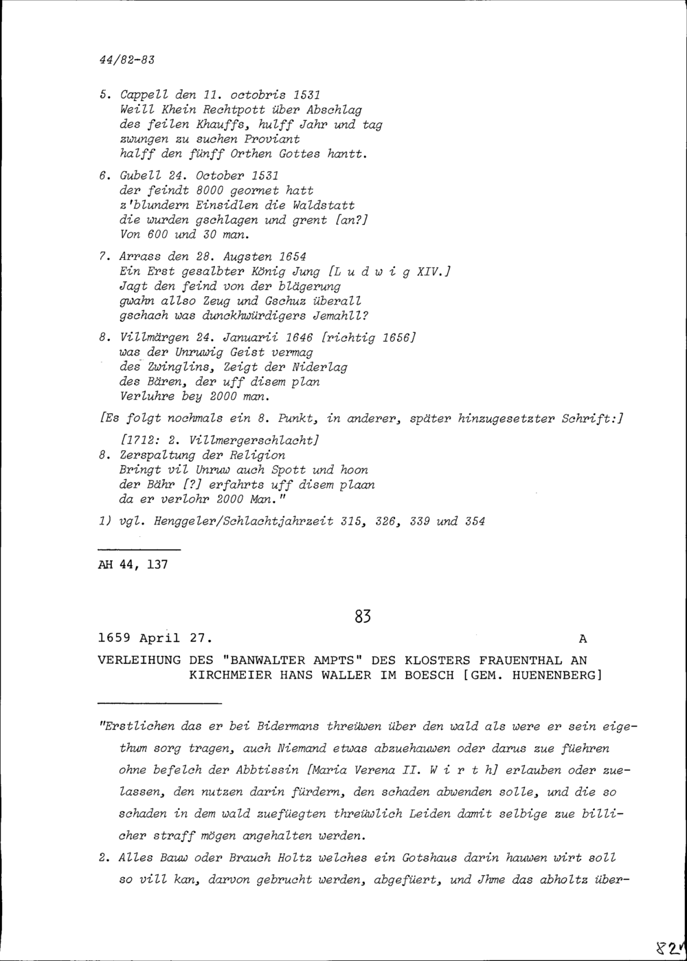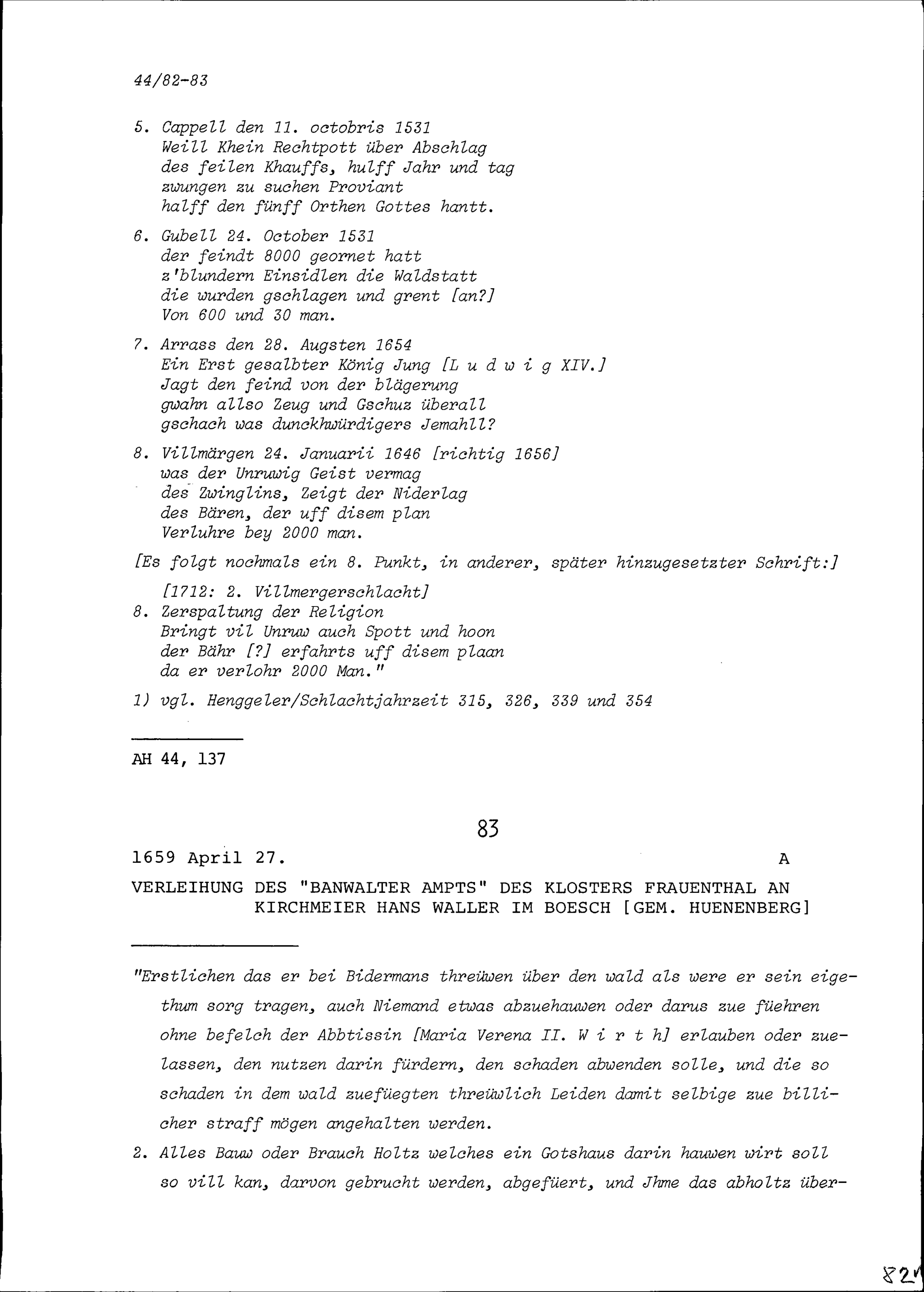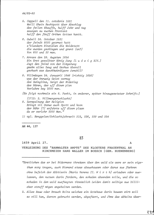 Verleihung des Bannwalteramts des Frauenklosters Frauenthal an Hans Waller, Kirchmeier, im Bösch in der Gemeinde Hünenberg