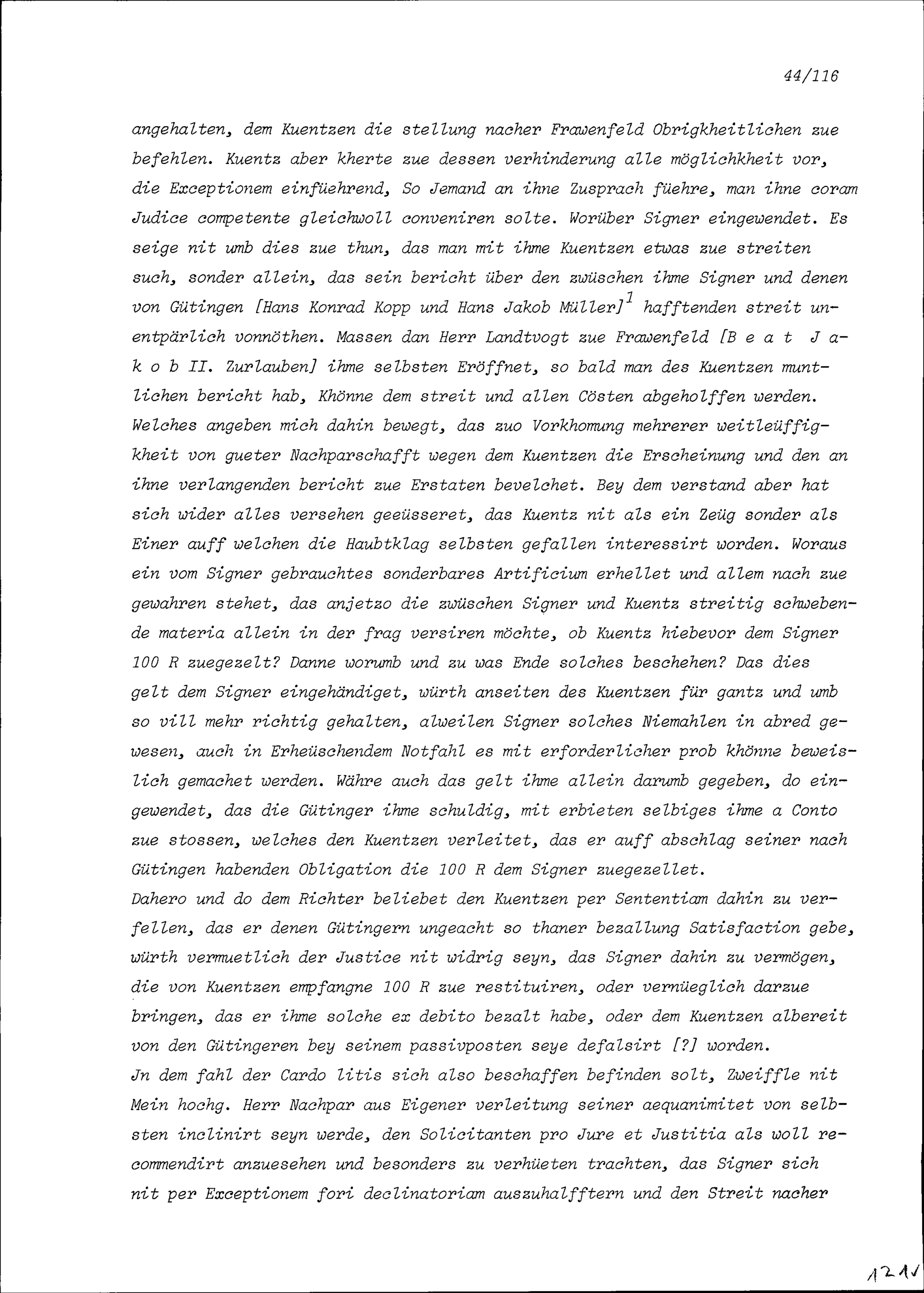 Schreiben von Peter Josef von Besenval, Landvogt im Toggenburg, an Johann Josef von Hallwil, bischöflich-konstanzischer Obervogt von Güttingen