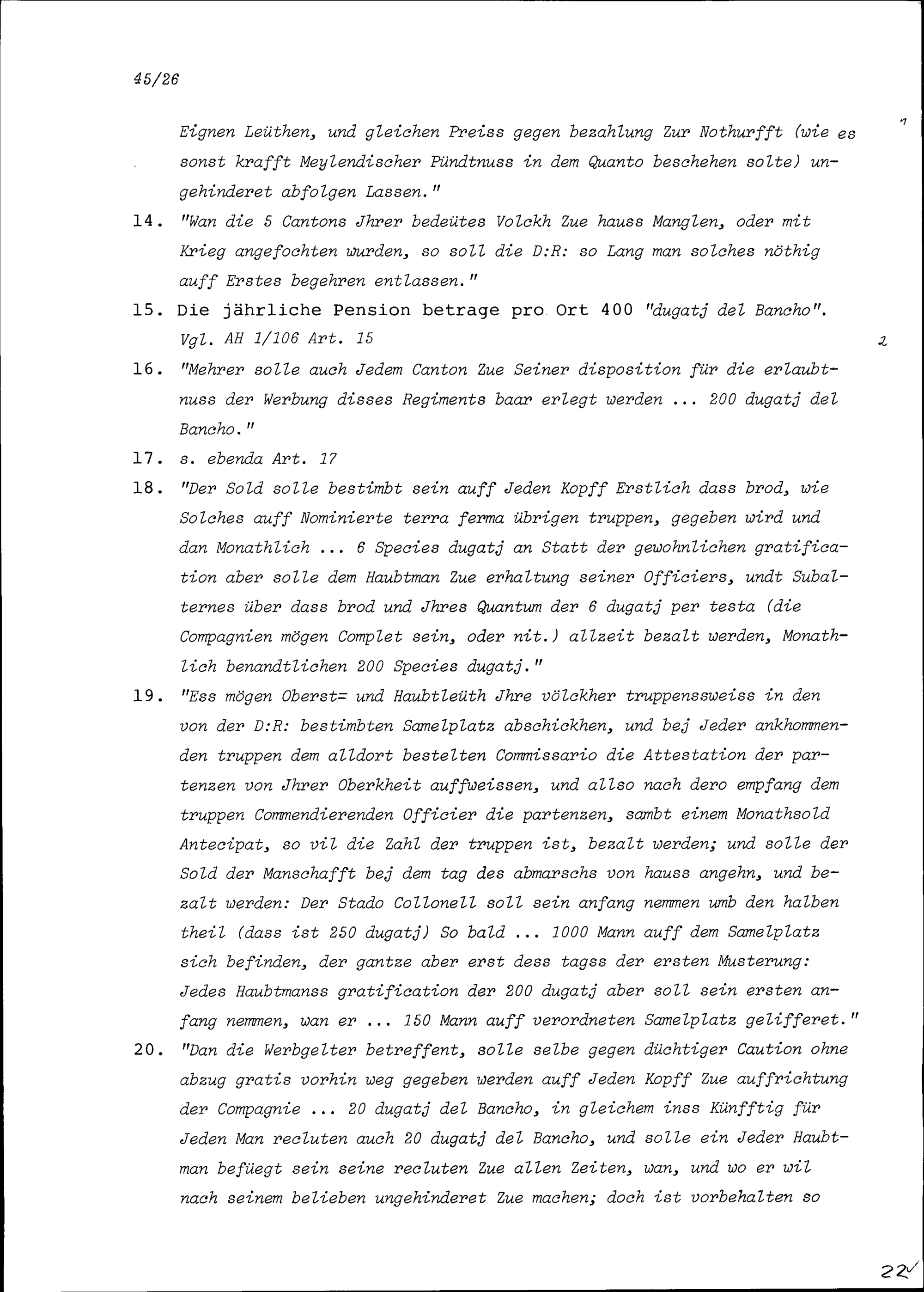 Stellungnahme zu einer geplanter Kapitulation (Werbung) eines Regiments in den Fünf Katholischen Orten durch Venedig betreffend Missverständnisse und Nutzen für die Eidgenossen