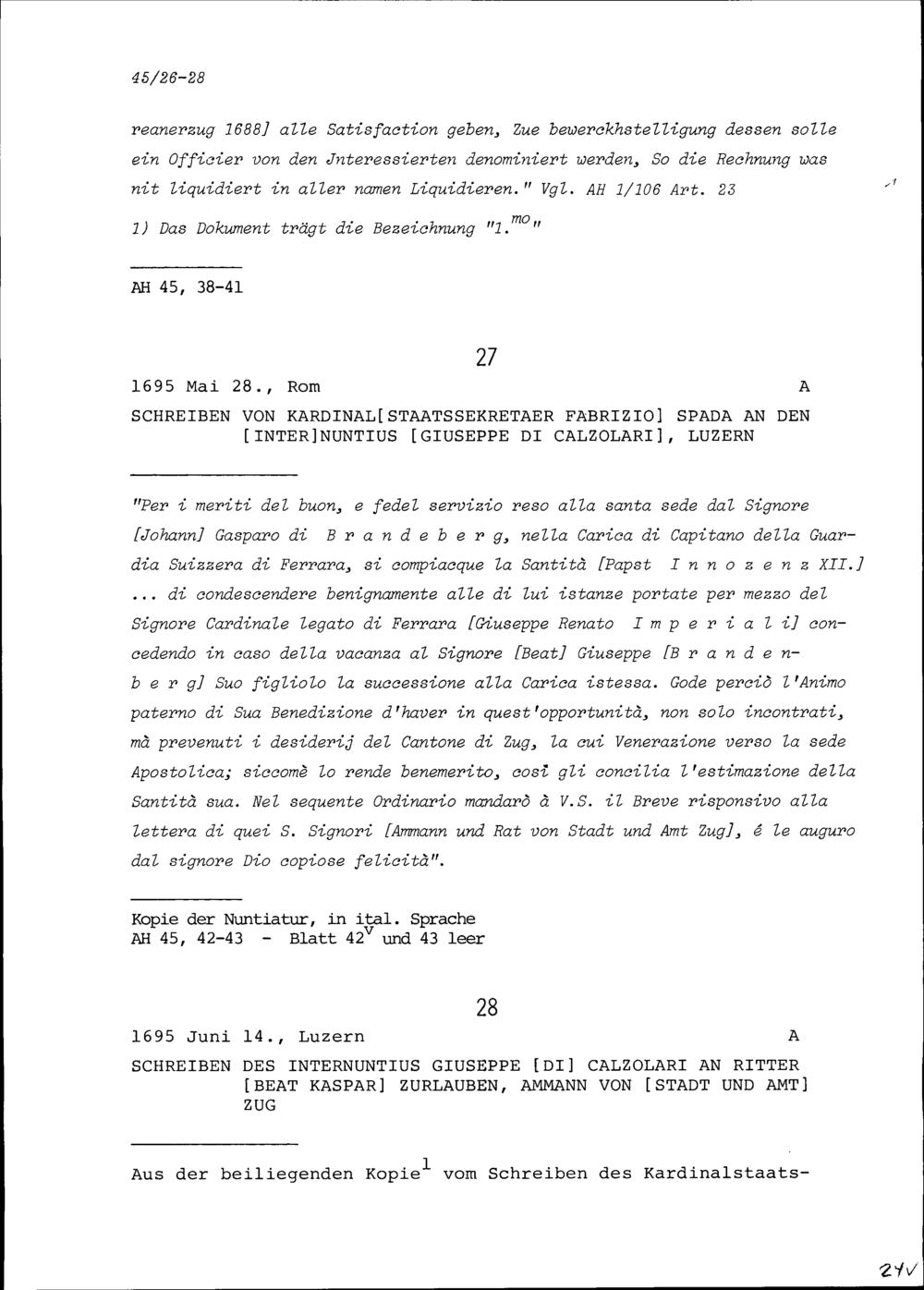 Schreiben von Fabrizio Spada, Kardinalstaatssekretär, an Giuseppe di Calzolari, Nuntius, Luzern
