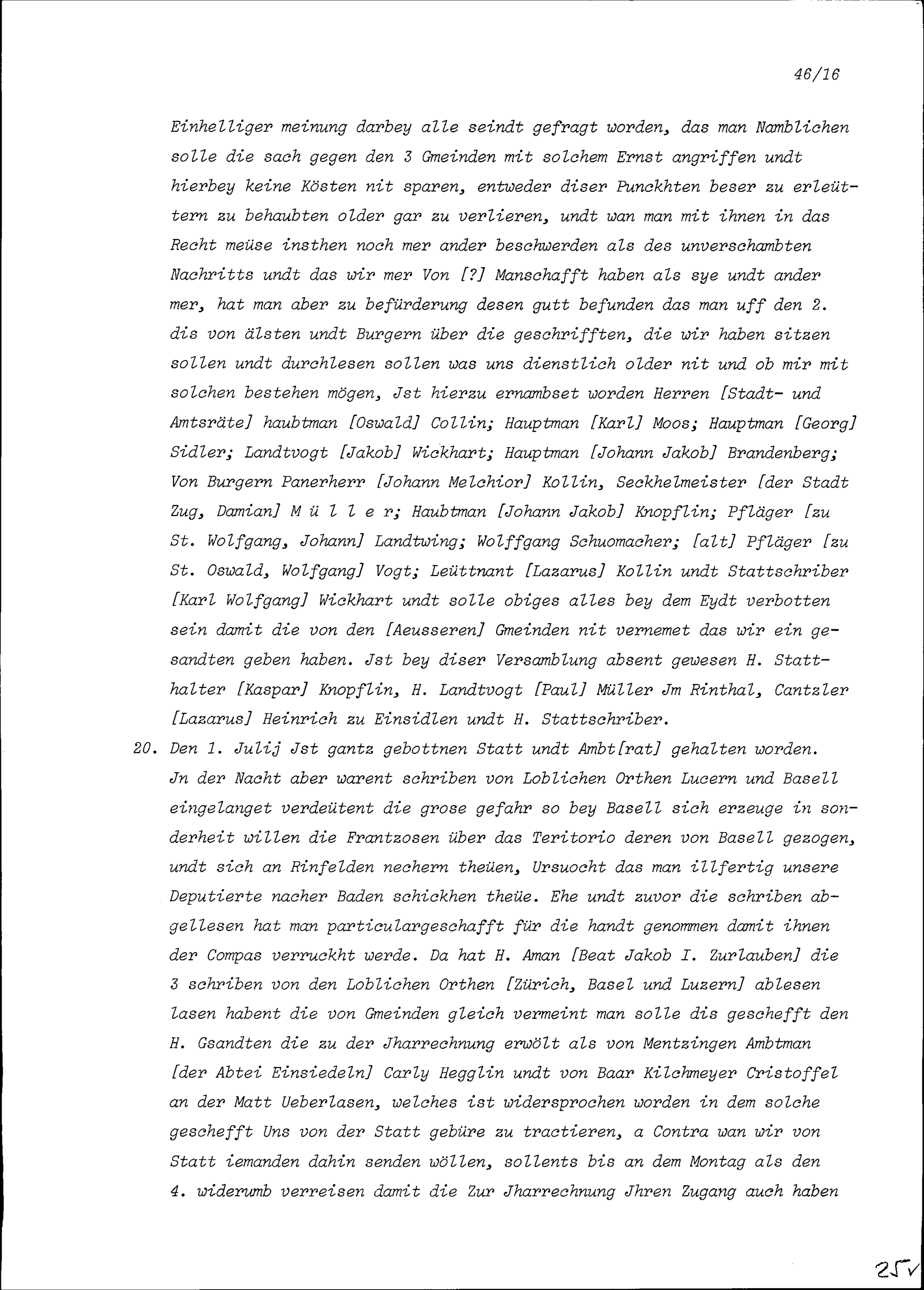 Bericht über den Streit (Libellhandel) zwischen der Stadt Zug und dem Äusseren Amt wegen des Beisitzes der Stadt Zug an der Jahrrechnung in Baden