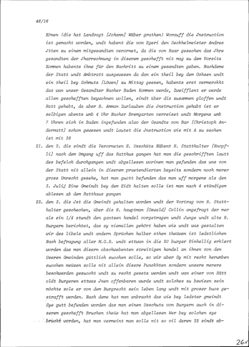 Bericht über den Streit (Libellhandel) zwischen der Stadt Zug und dem Äusseren Amt wegen des Beisitzes der Stadt Zug an der Jahrrechnung in Baden