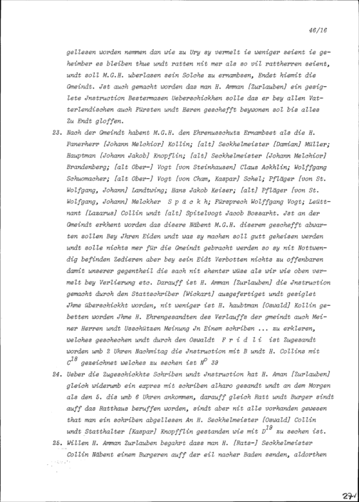 Bericht über den Streit (Libellhandel) zwischen der Stadt Zug und dem Äusseren Amt wegen des Beisitzes der Stadt Zug an der Jahrrechnung in Baden