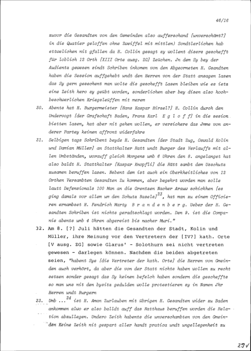 Bericht über den Streit (Libellhandel) zwischen der Stadt Zug und dem Äusseren Amt wegen des Beisitzes der Stadt Zug an der Jahrrechnung in Baden