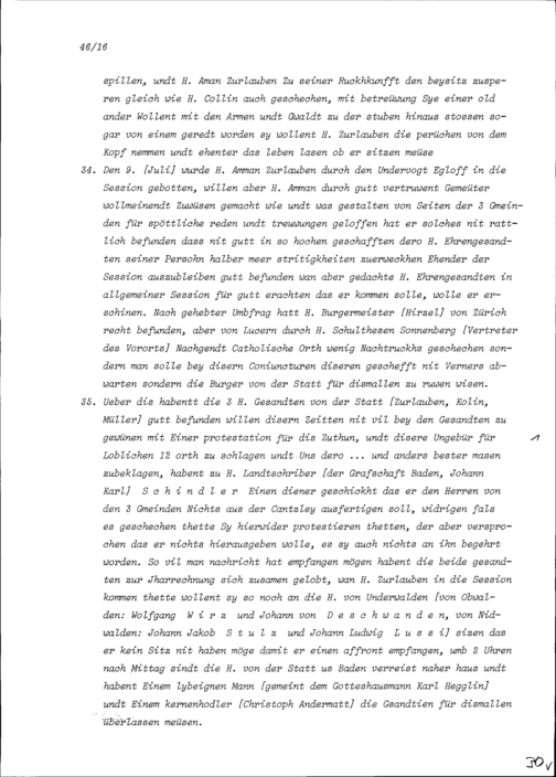 Bericht über den Streit (Libellhandel) zwischen der Stadt Zug und dem Äusseren Amt wegen des Beisitzes der Stadt Zug an der Jahrrechnung in Baden