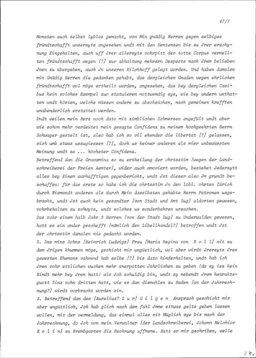 Schreiben von Beat Jakob I. Zurlauben an Eustache von Sonnenberg, Schultheiss