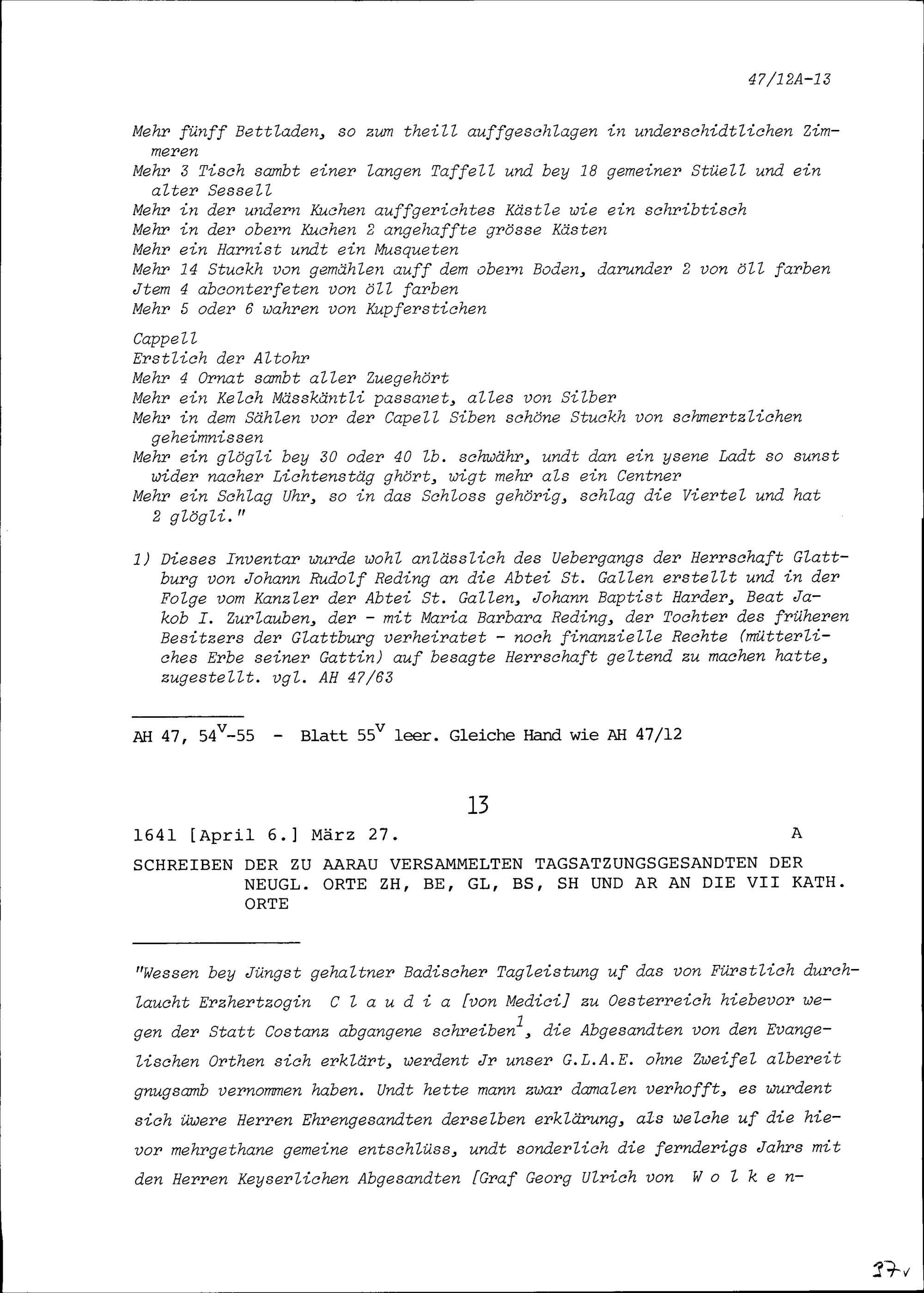 Schreiben der Tagsatzungsgesandten der Neugläubigen Orte Zürich, Bern, Glarus, Basel, Schaffhausen und Appenzell-Ausserrhoden in Aarau an die Sieben Katholischen Orte