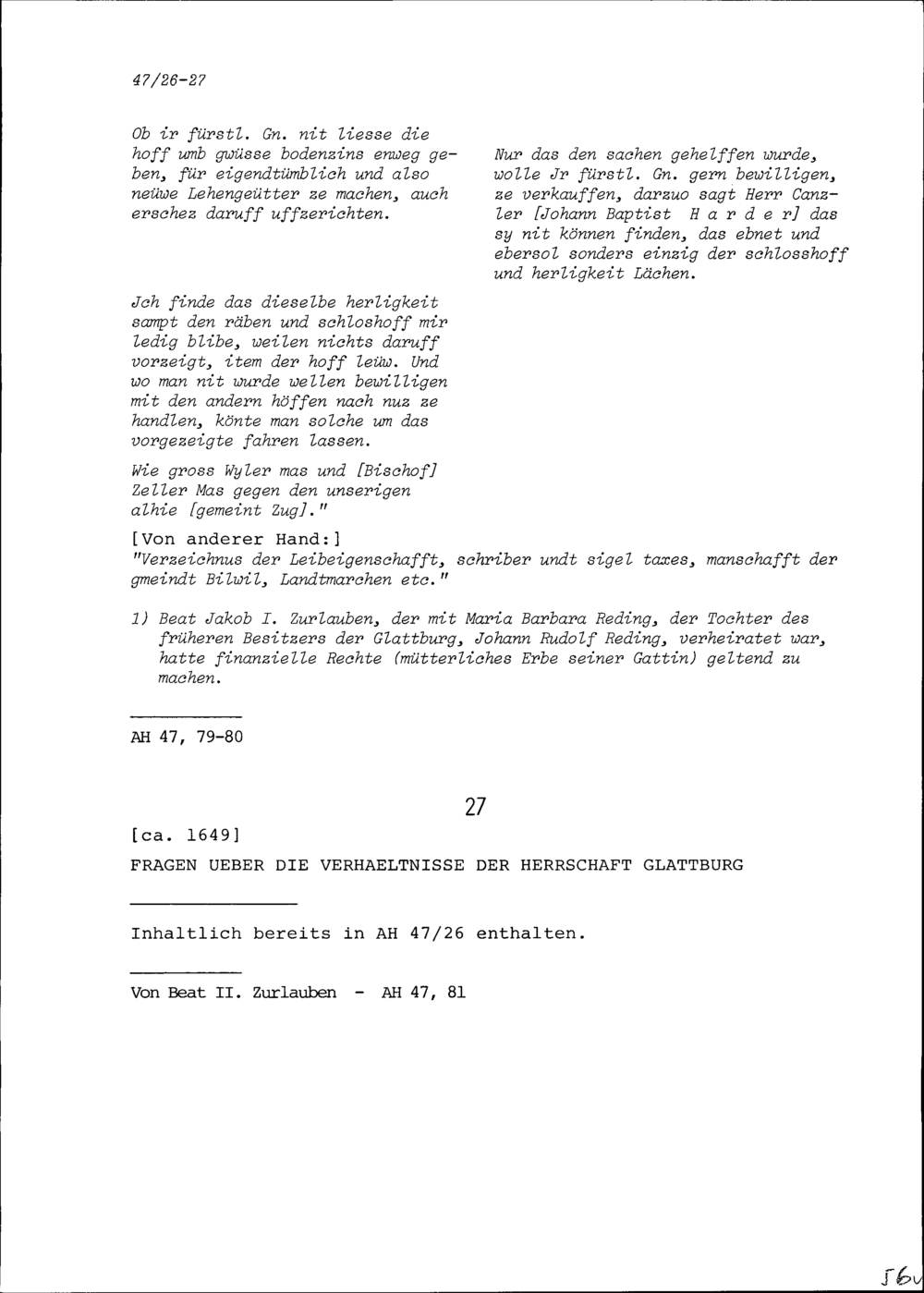 Fragen über die Verhältnisse der Herrschaft Glattburg