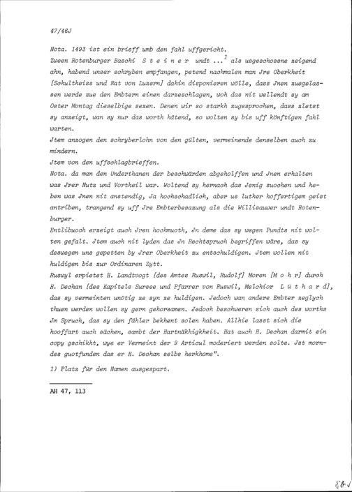 Notiz von Beat II. Zurlauben, Vermittler im Bauernkrieg über die Vermittlungsbemühungen...
