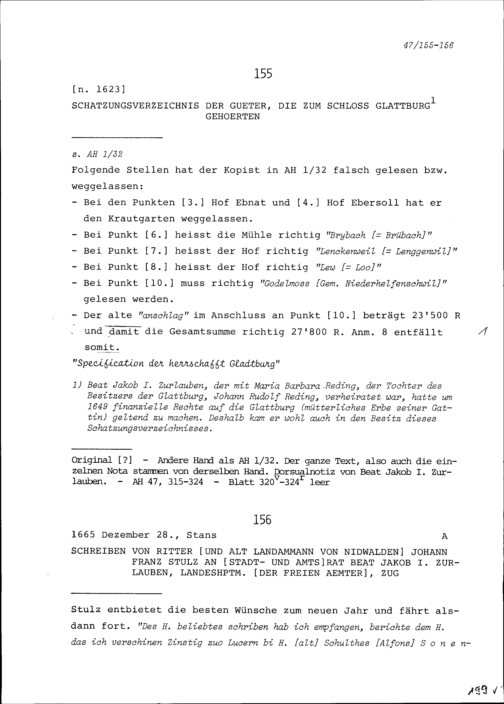 Schatzungsverzeichnis der Güter, die zum Schloss Glattburg gehören