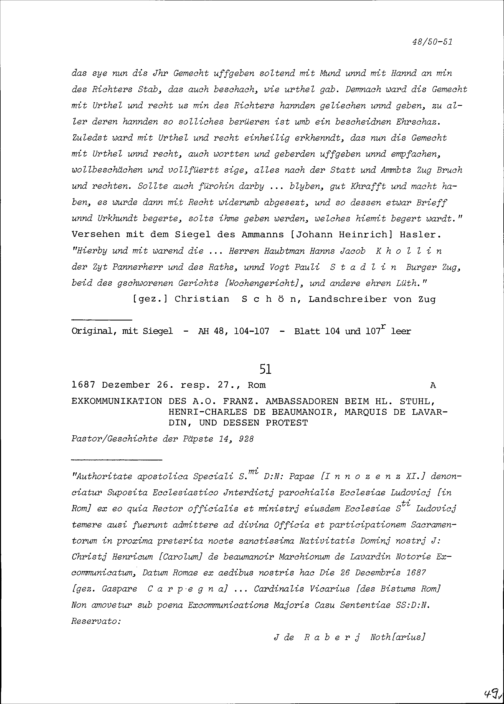 Exkommunikation von Henri-Charles de Beaumanoir, Marquis de Lavardin, ausserordentlicher Ambassador von Frankreich beim Heiligen Stuhl, und dessen Protest