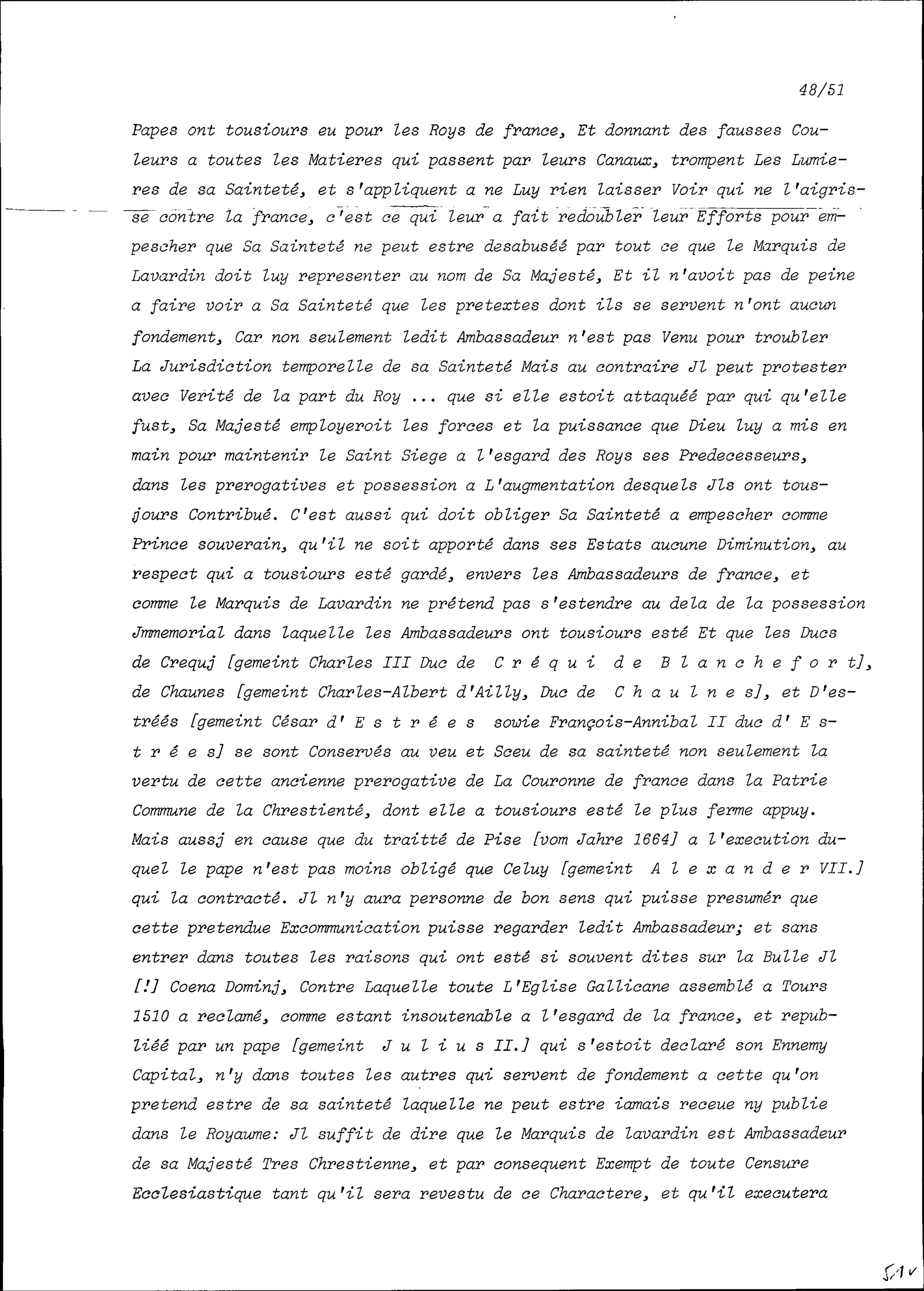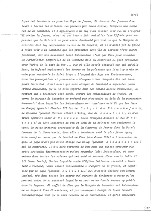 Exkommunikation von Henri-Charles de Beaumanoir, Marquis de Lavardin, ausserordentlicher Ambassador von Frankreich beim Heiligen Stuhl, und dessen Protest