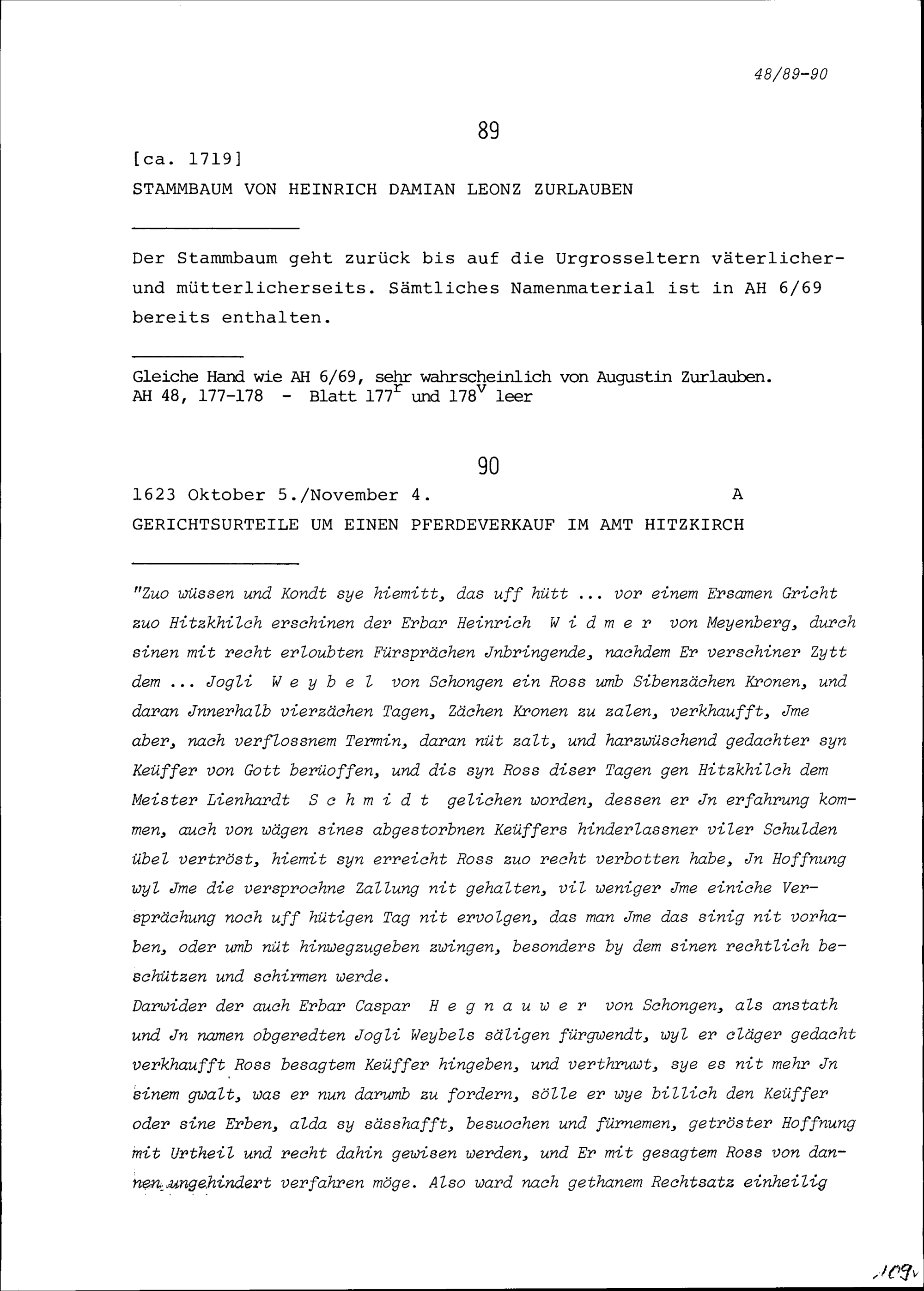 Stammbaum von Heinrich Damian Leonz Zurlauben