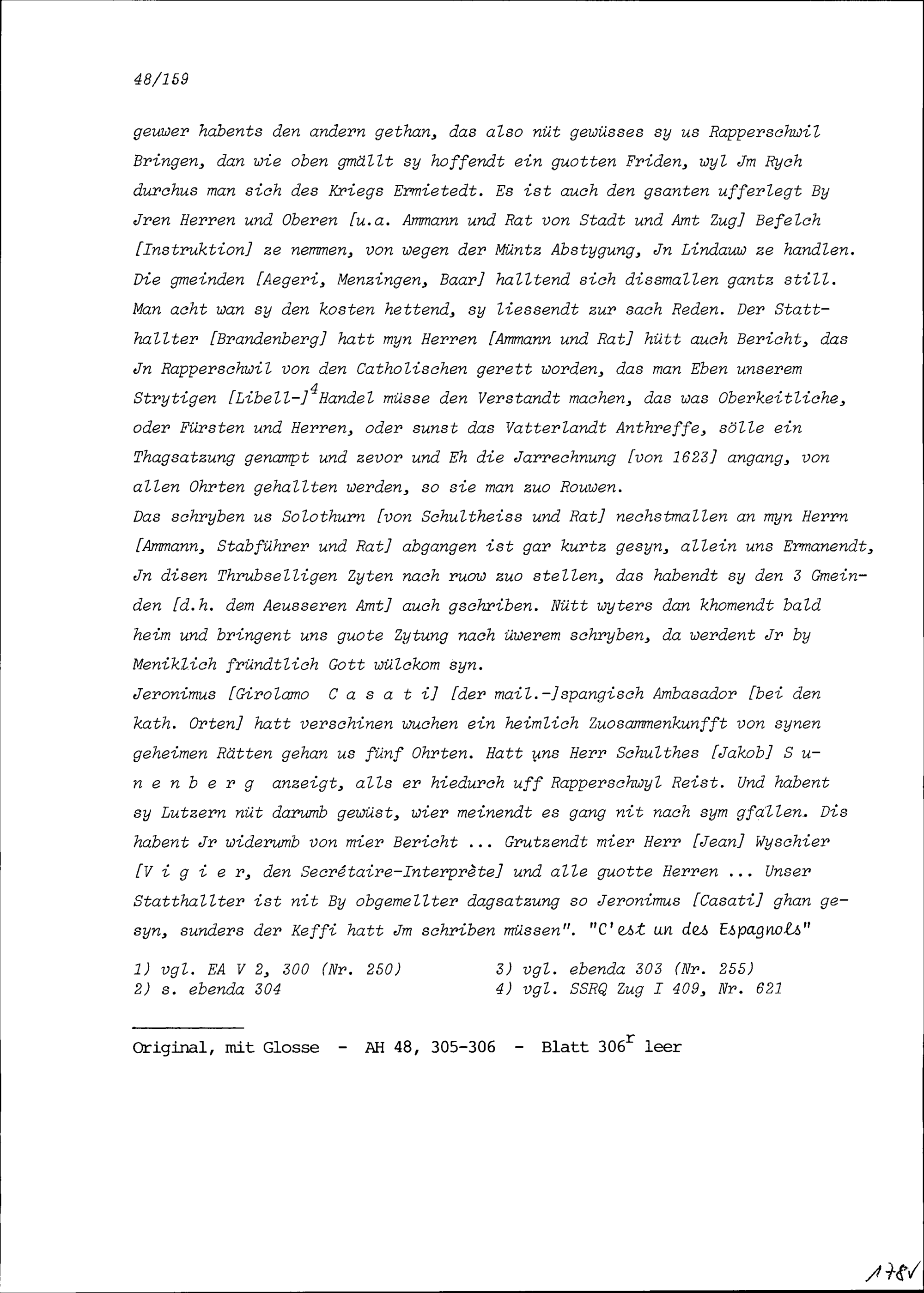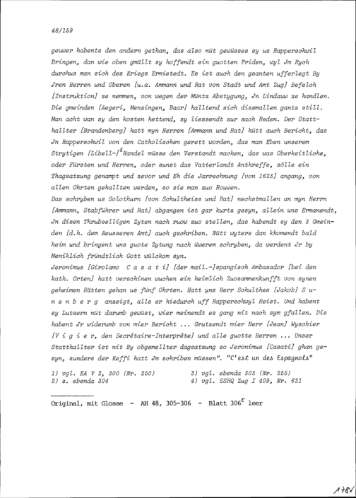 Schreiben von Paul Stocker, Stadt- und Amtrat, an Konrad III. Zurlauben, Gesandter...