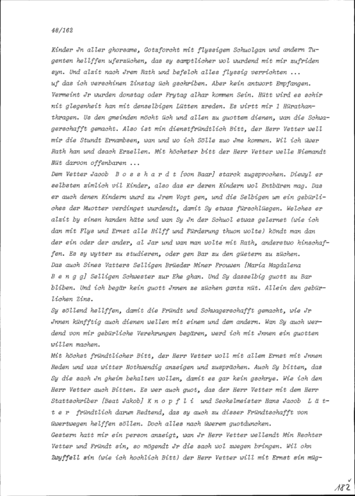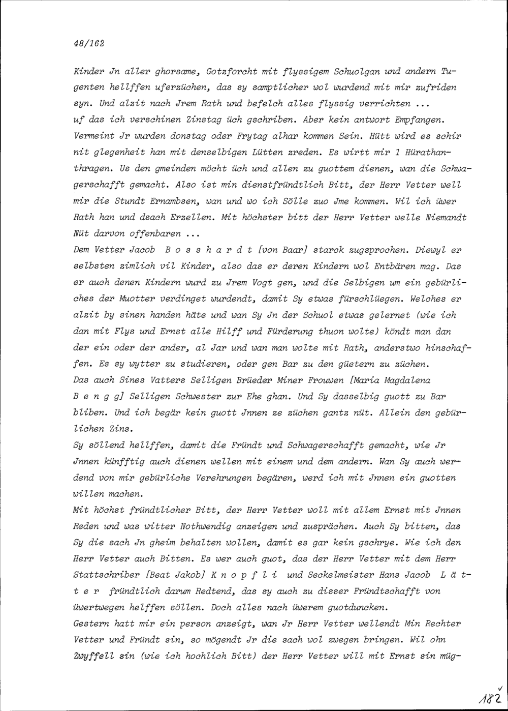 Notiz von Oswald II. Zurlauben zuhanden von Beat II. Zurlauben über seine Heirat mit der Schwester von Beat Jakob Utiger, Ammann
