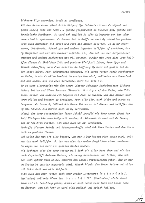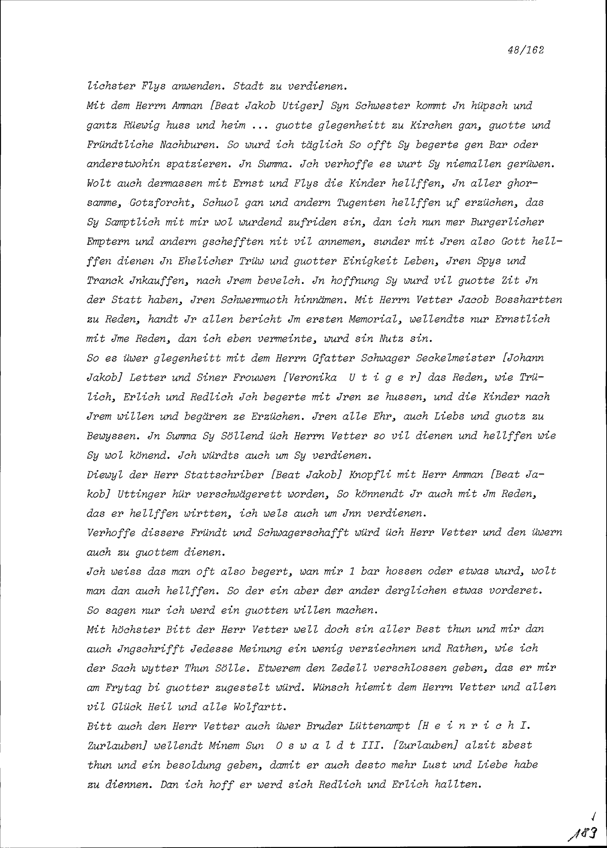 Notiz von Oswald II. Zurlauben zuhanden von Beat II. Zurlauben über seine Heirat mit der Schwester von Beat Jakob Utiger, Ammann