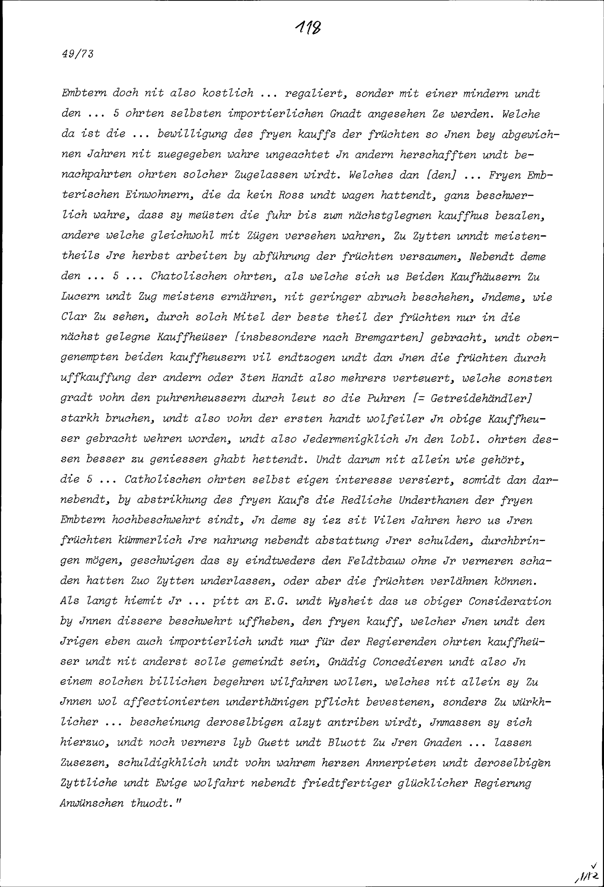 Ansprache von Beat Jakob I. Zurlauben, Landschreiber der Freien Ämter, vor den Tagsatzungsgesandten der Fünf Katholischen Orte