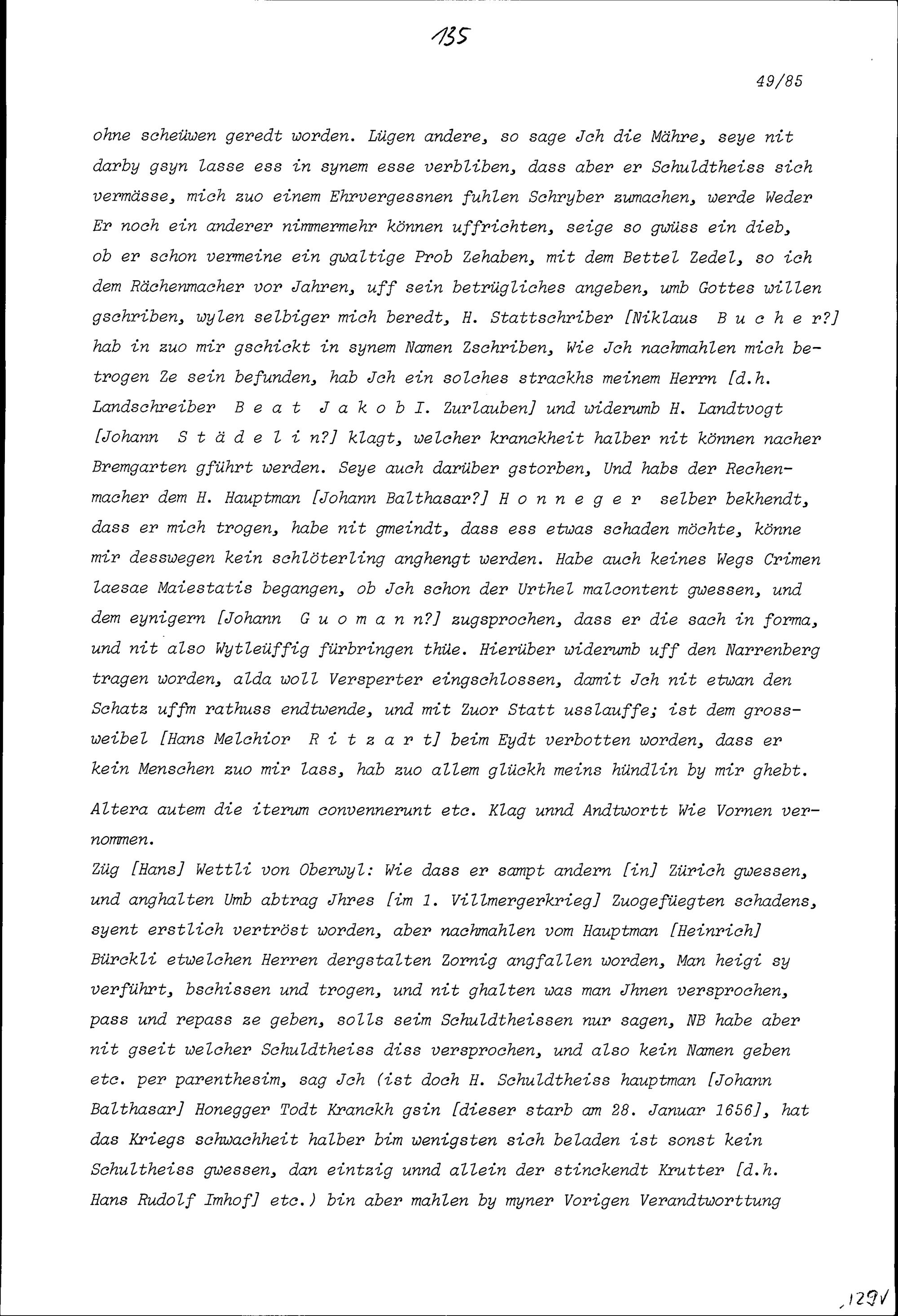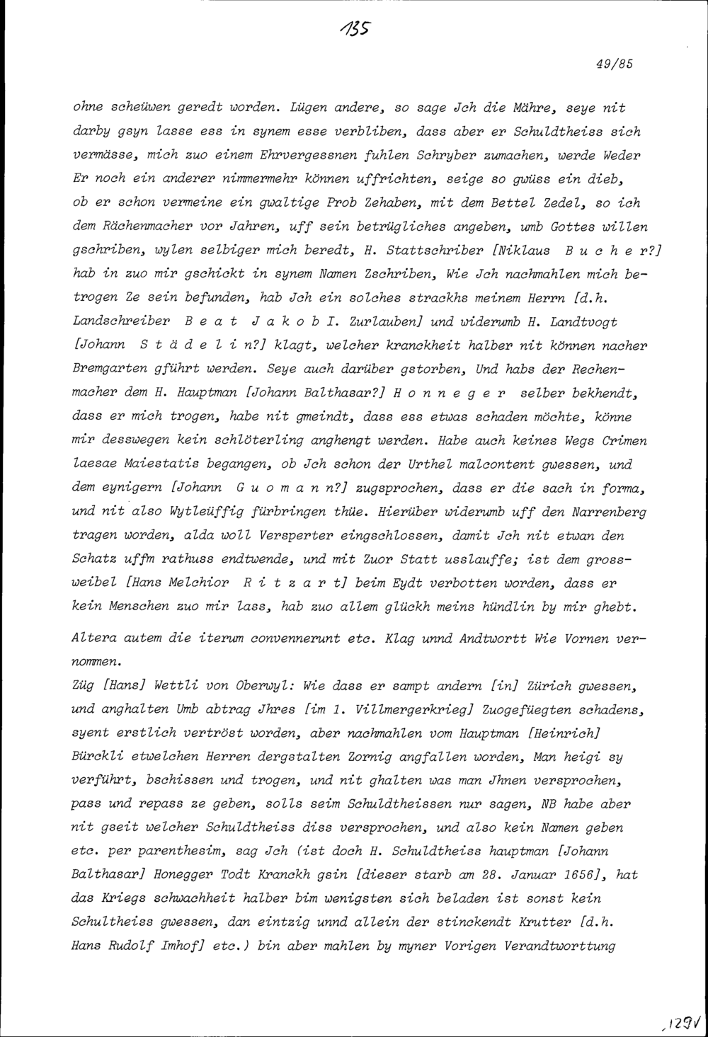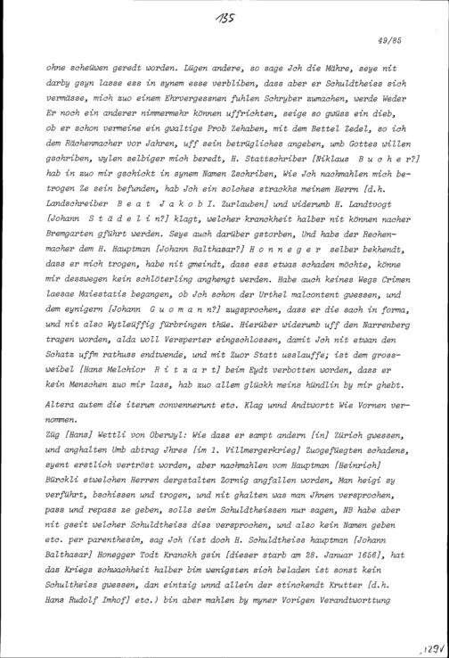 Klage und Antwort zwischen Simon Marx, Landschreibersubstitut der Freien Ämter, und Hans Rudolf Imhof, Altschultheiss und Rat von Bremgarten, vor den Räten zu Bremgarten sowie deren Urteil, aufgezeichnet von Simon Marx