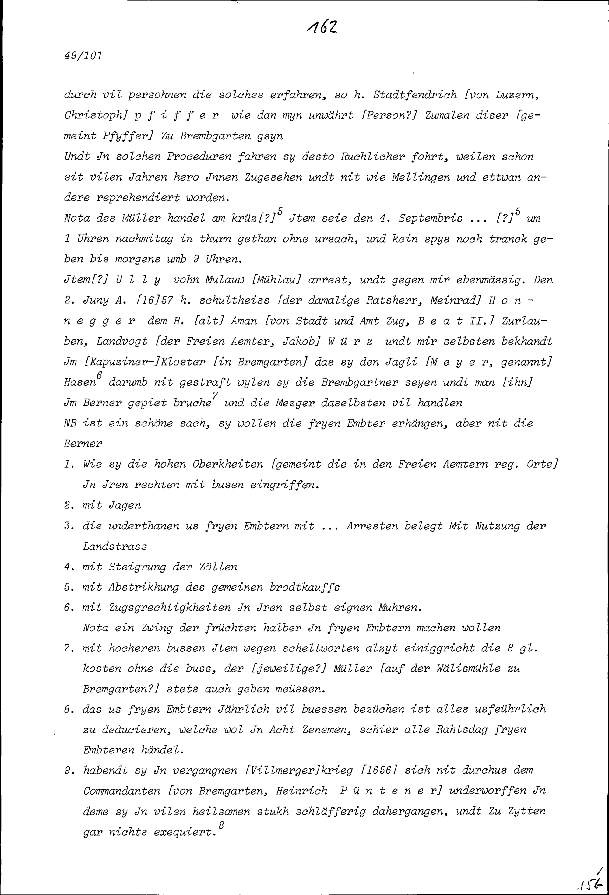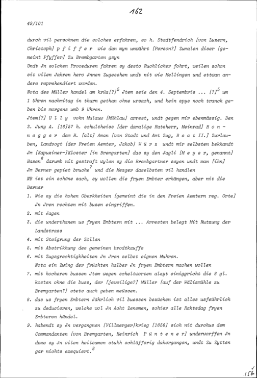 Notiz von Beat Jakob I. Zurlauben, Landschreiber der Freien Ämter, über verschiedene Streitigkeiten, welche dieser mit der Stadt Bremgarten hatte