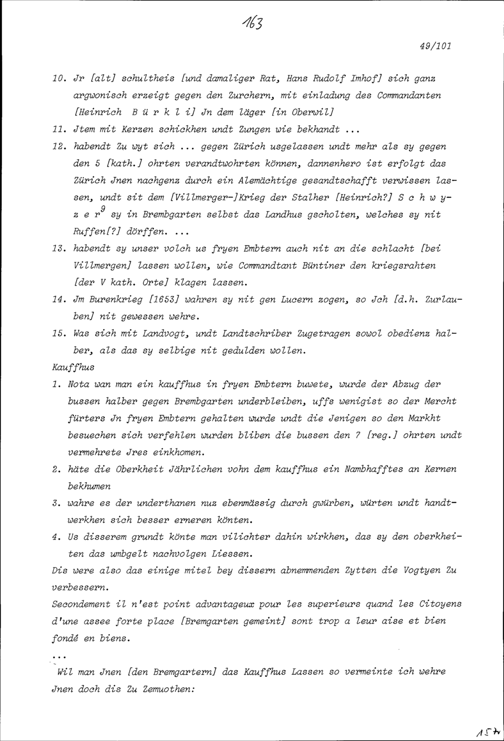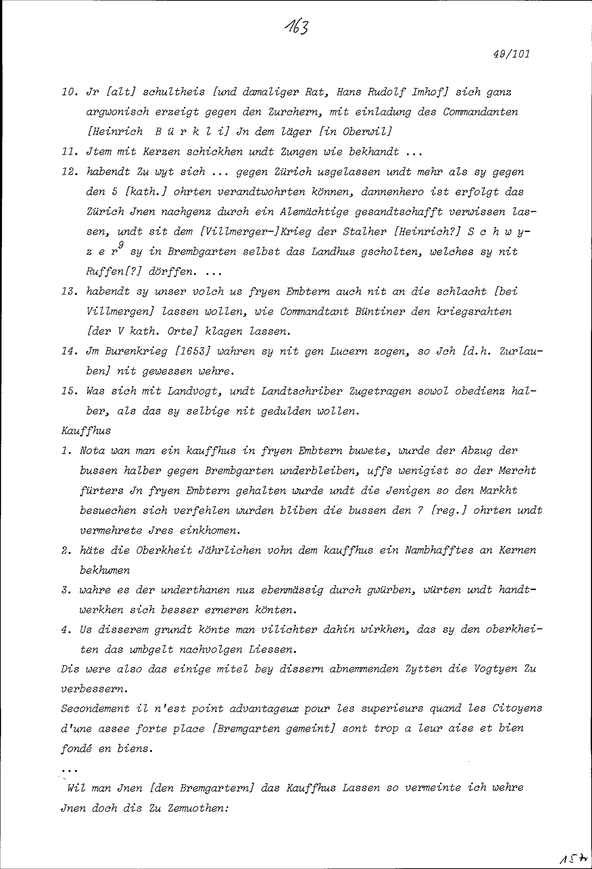 Notiz von Beat Jakob I. Zurlauben, Landschreiber der Freien Ämter, über verschiedene Streitigkeiten, welche dieser mit der Stadt Bremgarten hatte