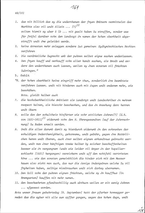 Notiz von Beat Jakob I. Zurlauben, Landschreiber der Freien Ämter, über verschiedene Streitigkeiten, welche dieser mit der Stadt Bremgarten hatte