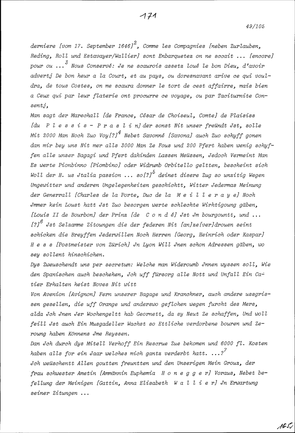 Schreiben von Heinrich I. Zurlauben, Gardehauptmann, an Beat II. Zurlauben