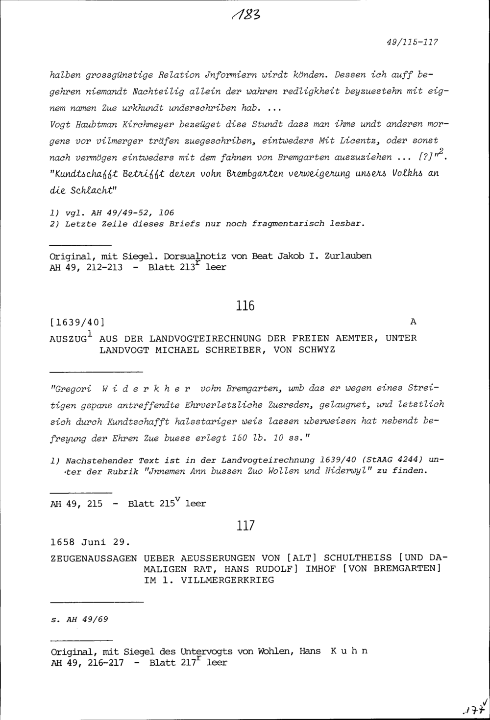 Landvogteirechnung der Freien Ämter unter Michael Schreiber, Landvogt, von Schwyz