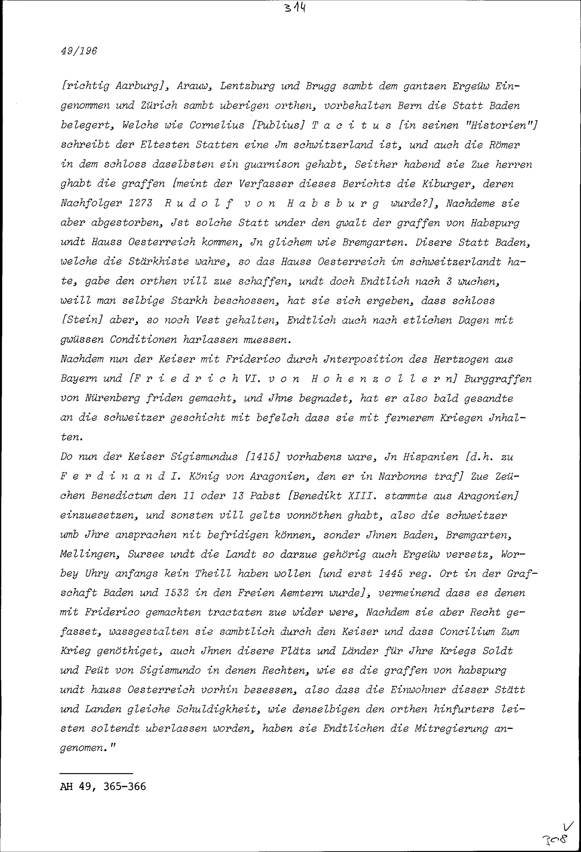 Historische Notiz zu Baden, Bremgarten und Mellingen