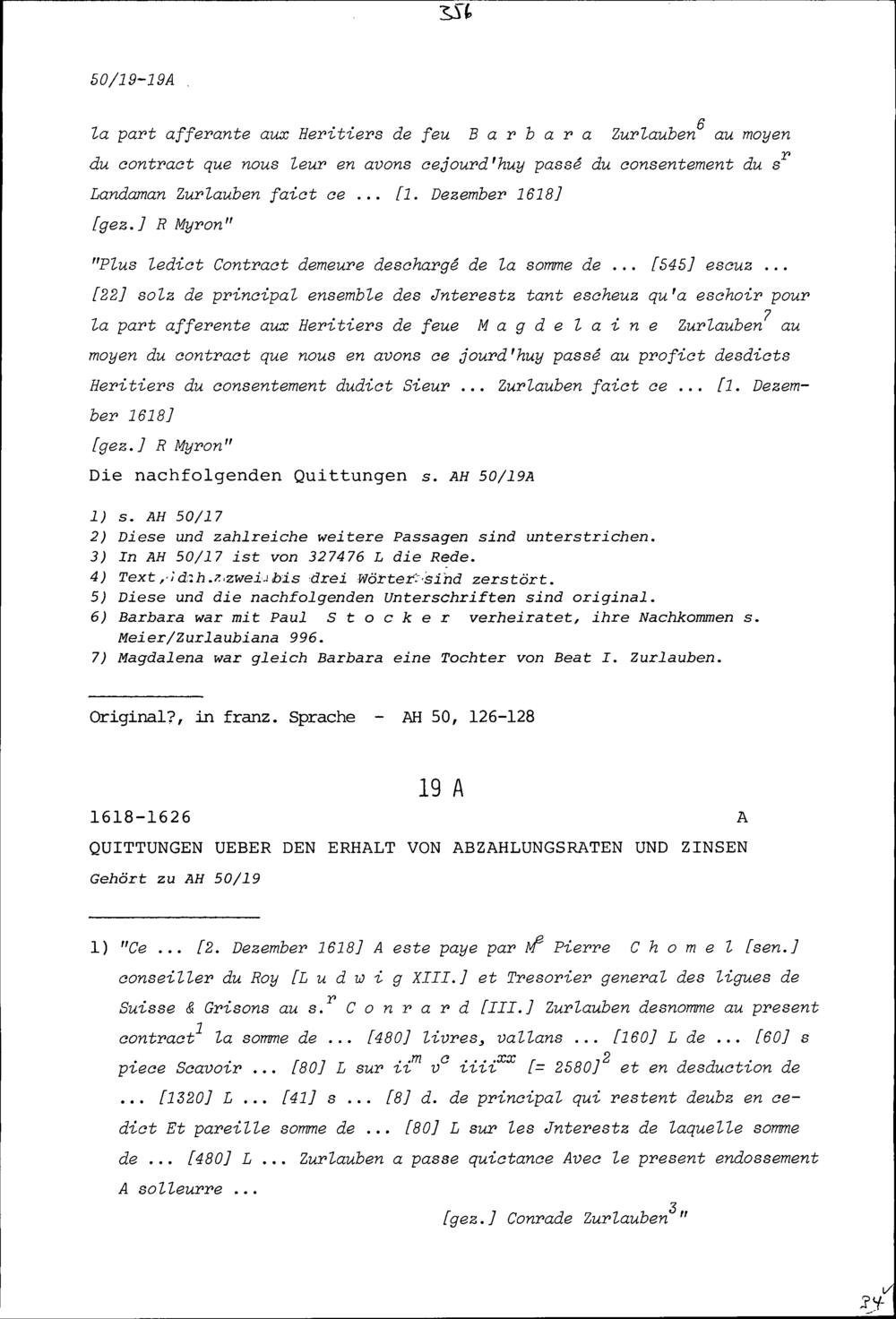 Quittungen über den Erhalt von Abzahlungsraten und Zinsen