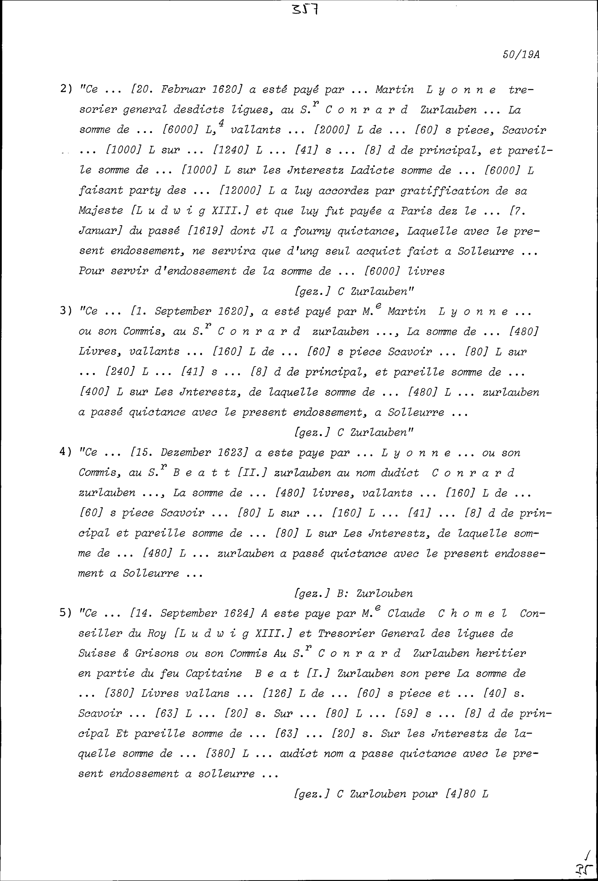 Quittungen über den Erhalt von Abzahlungsraten und Zinsen