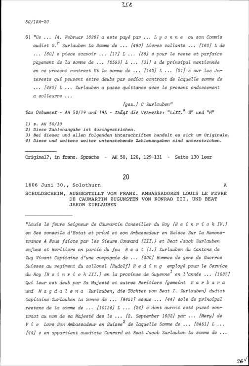 Schuldschein zugunsten von Konrad III. und Beat Jakob Zurlauben, ausgestellt von Louis Le Fèvre de Caumartin Ambassador von Frankreich