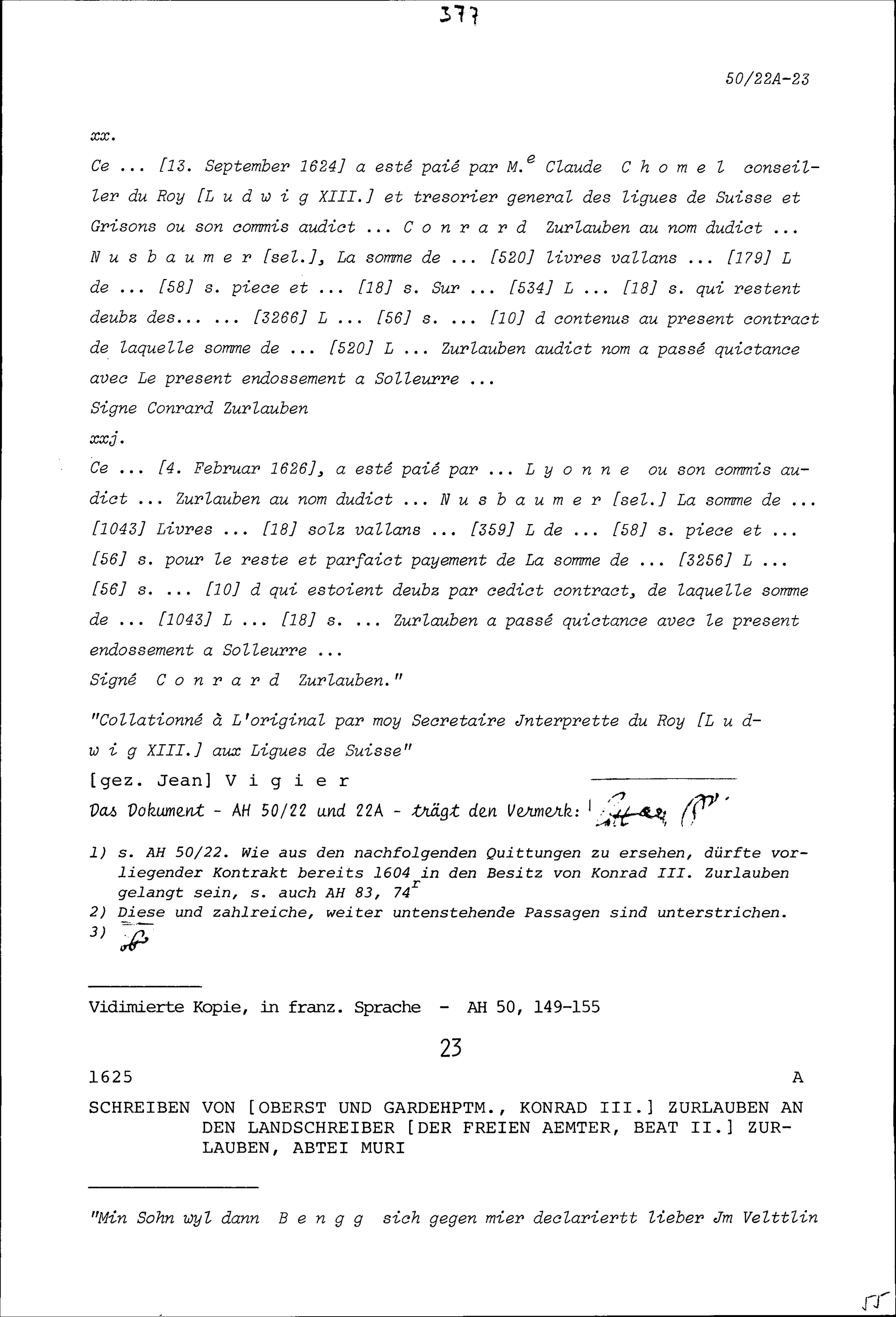 Schreiben von Konrad III. Zurlauben, Oberst und Gardehauptmann, an Beat II. Zurlauben,...