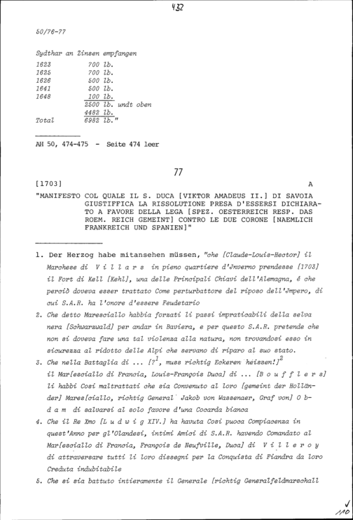 Manifest betreffend Viktor Amadeus II., Herzog von Savoyen, in Zusammenhang mit Österreich beziehungsweise dem Römischen Reich und der französischen Krone