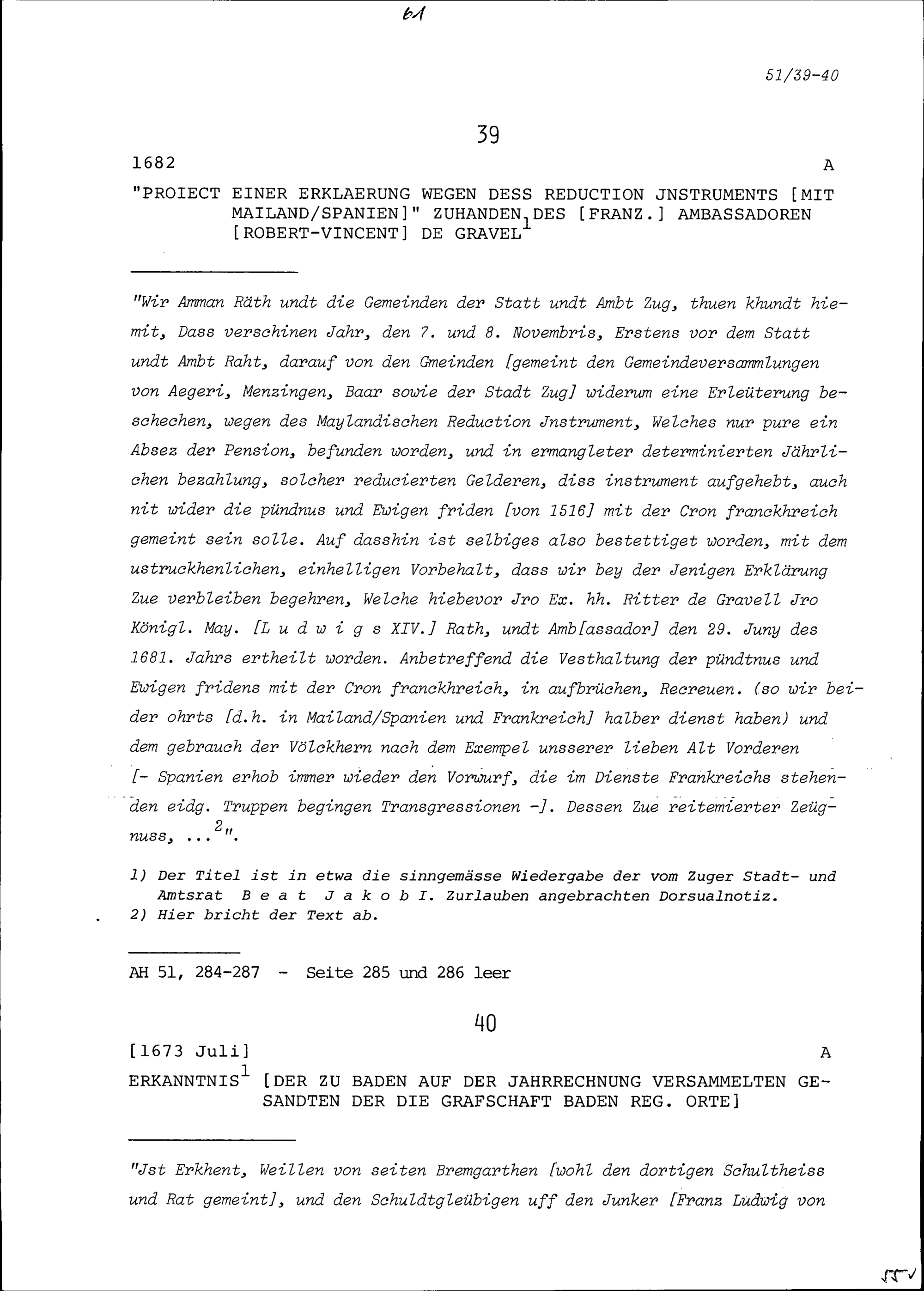 Entwurf einer Erklärung von Robert-Vincent wegen des Reduktionsinstruments zuhanden...