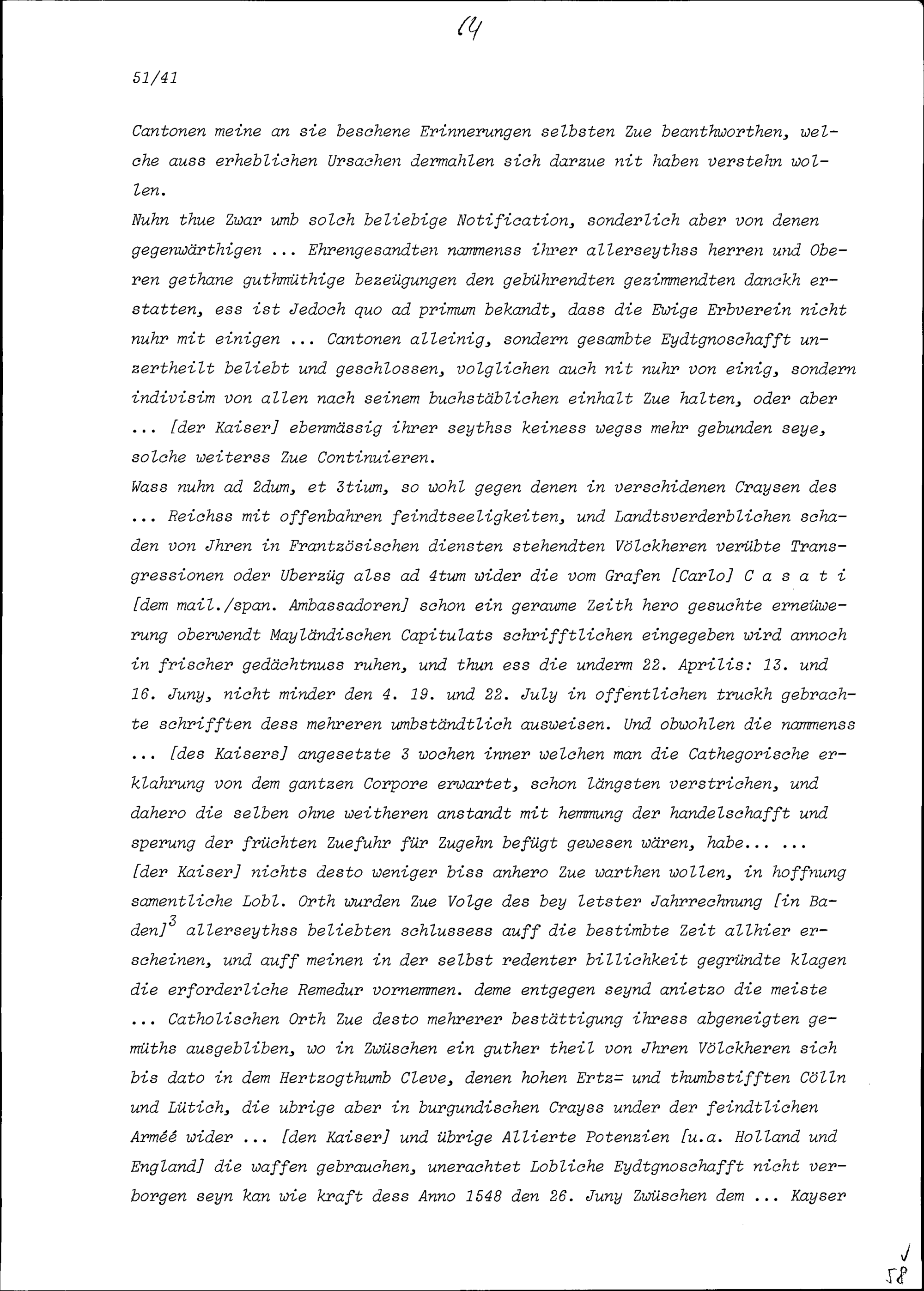 Schreiben von Franz Ehrenreich, Graf und Herr zu Trautmannsdorff, Gesandter des Römischen Reiches, an die Tagsatzungsgesandten der Dreizehn Orte und von Stadt und Abtei Sankt Gallen in Baden