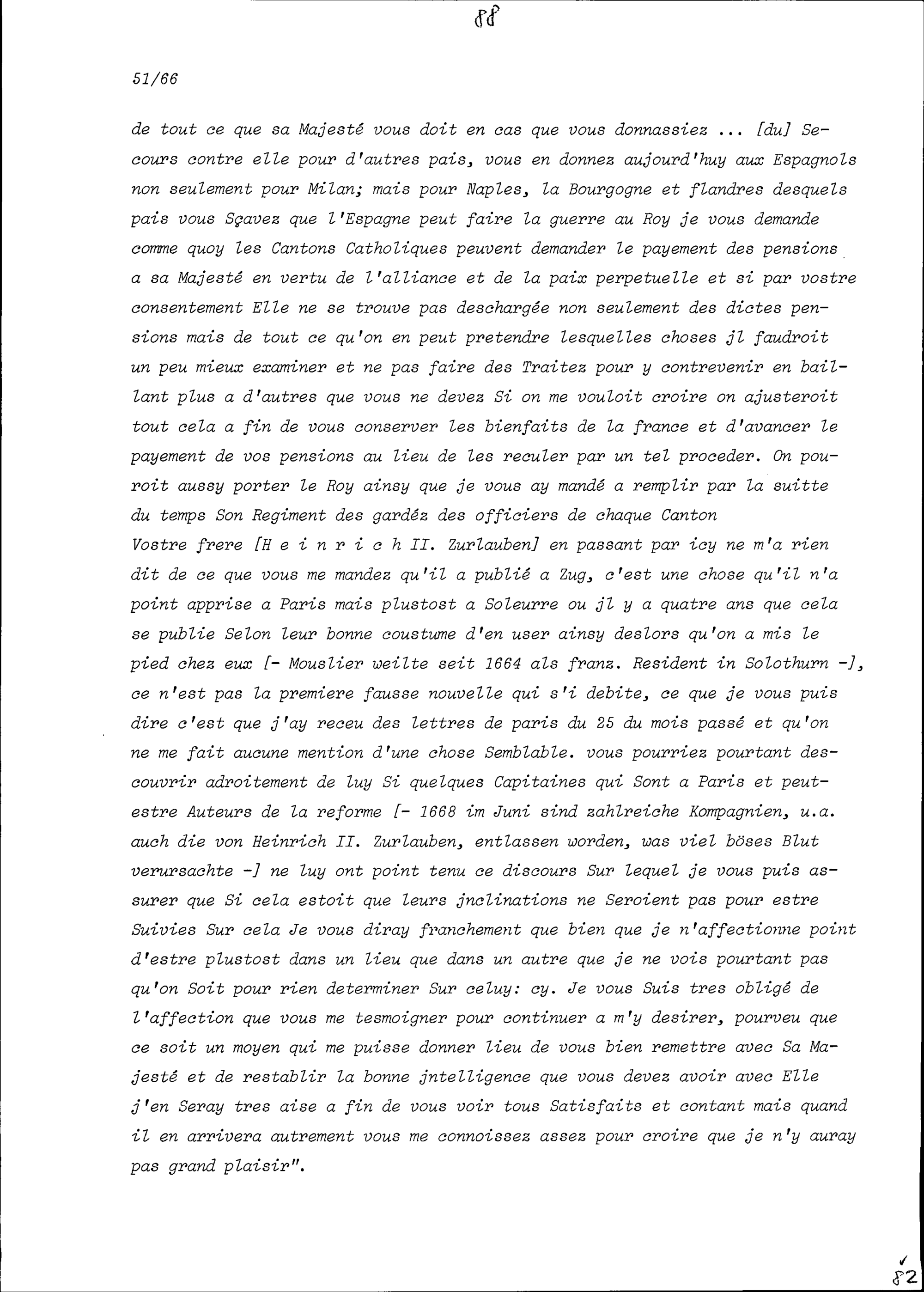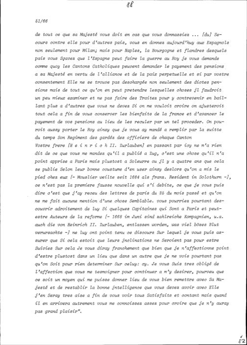 Schreiben von François Mouslier, Resident von Frankreich, an Beat Jakob I. Zurlauben, Statthalter, Zug