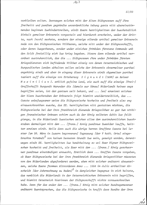 Entwurf einer Notiz, die Robert-Vincent de Gravel, Ambassador von Frankreich, an der Jahrrechnung in Baden vorbringen konnte, verfasst von Augustin Reding, Abt, von Einsiedeln