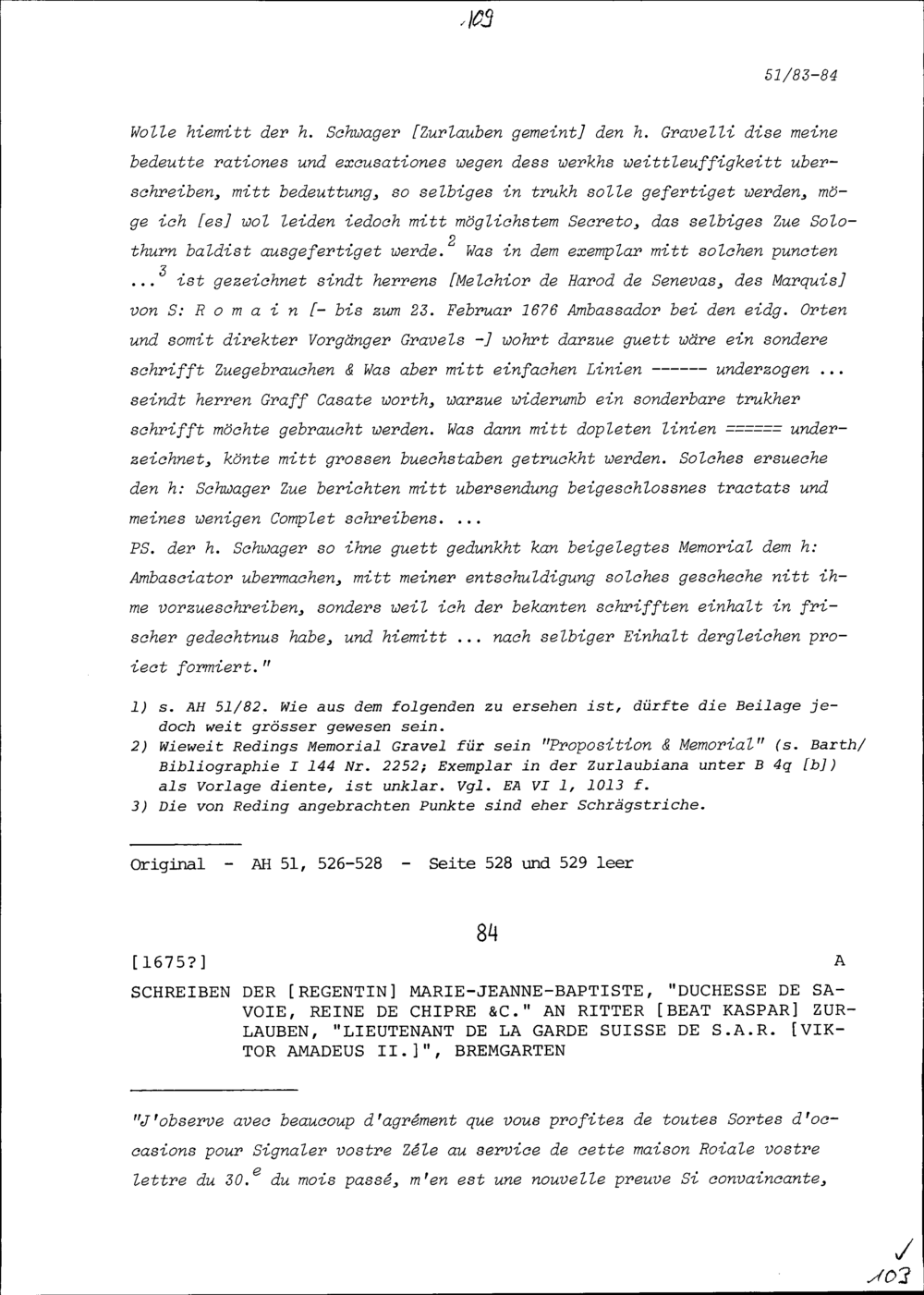Schreiben von Marie-Jeanne-Baptiste, Regentin und Herzogin von Savoyen, an Beat Kaspar Zurlauben, Bremgarten