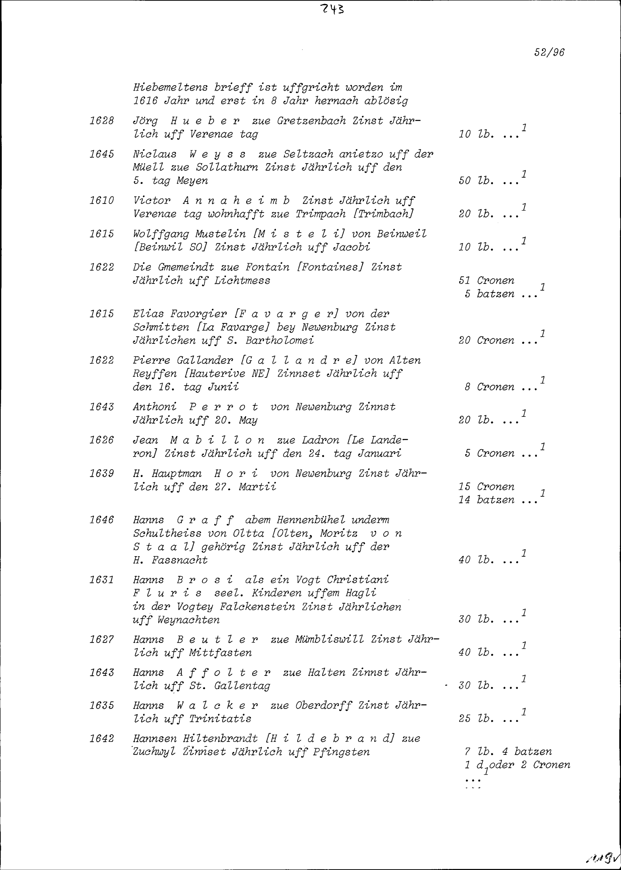 Gültbriefe von Anna Elisabeth Zurlauben, geborene Wallier