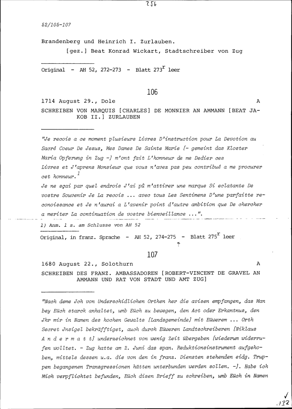 Schreiben von Charles de Monnier, Marquis, an Beat Jakob II. Zurlauben, Ammann