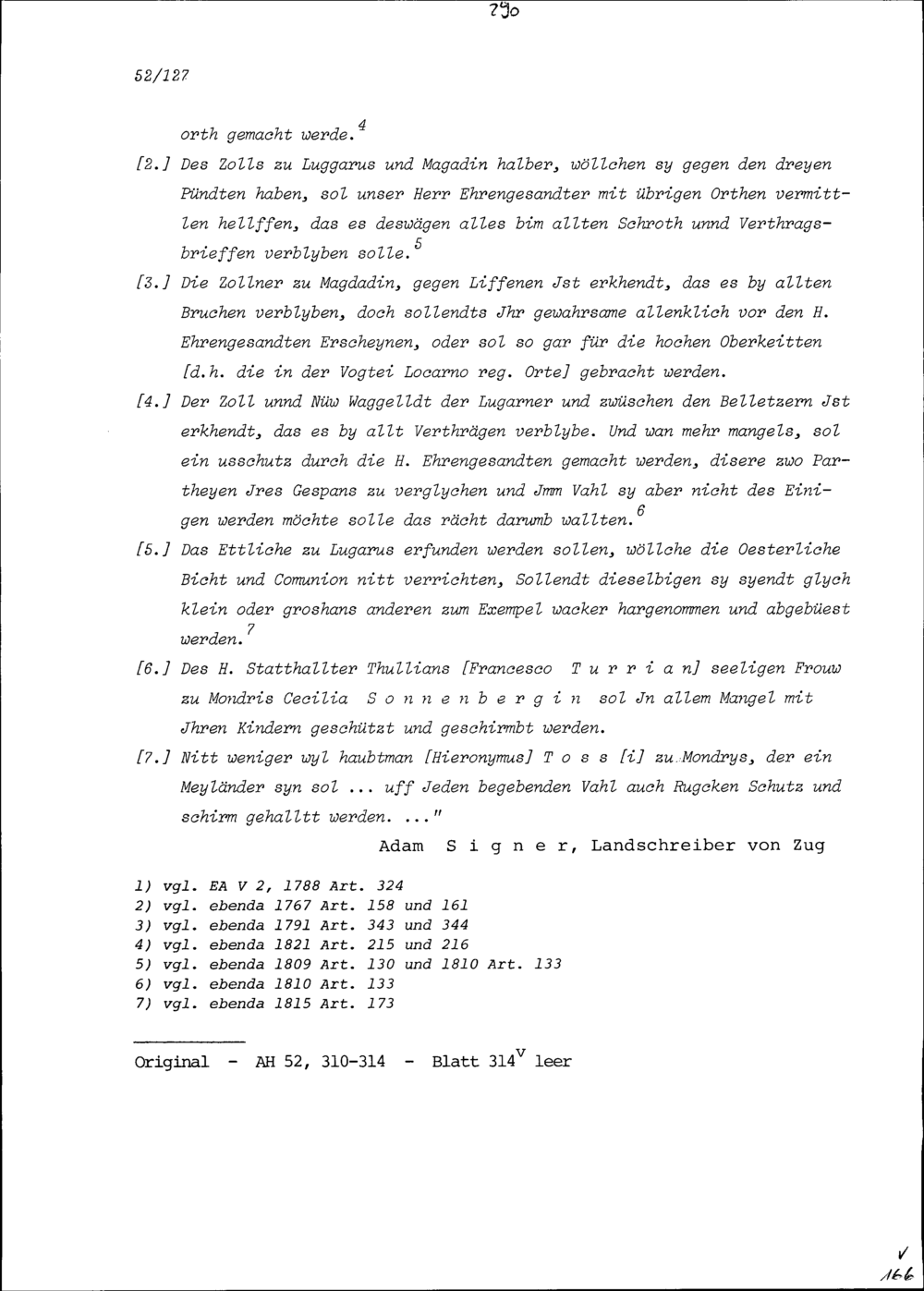 Instruktion von Stadt und Amt Zug auf die Jahrrechnungen von Lugano und Locarno vom 24. Juni 1644