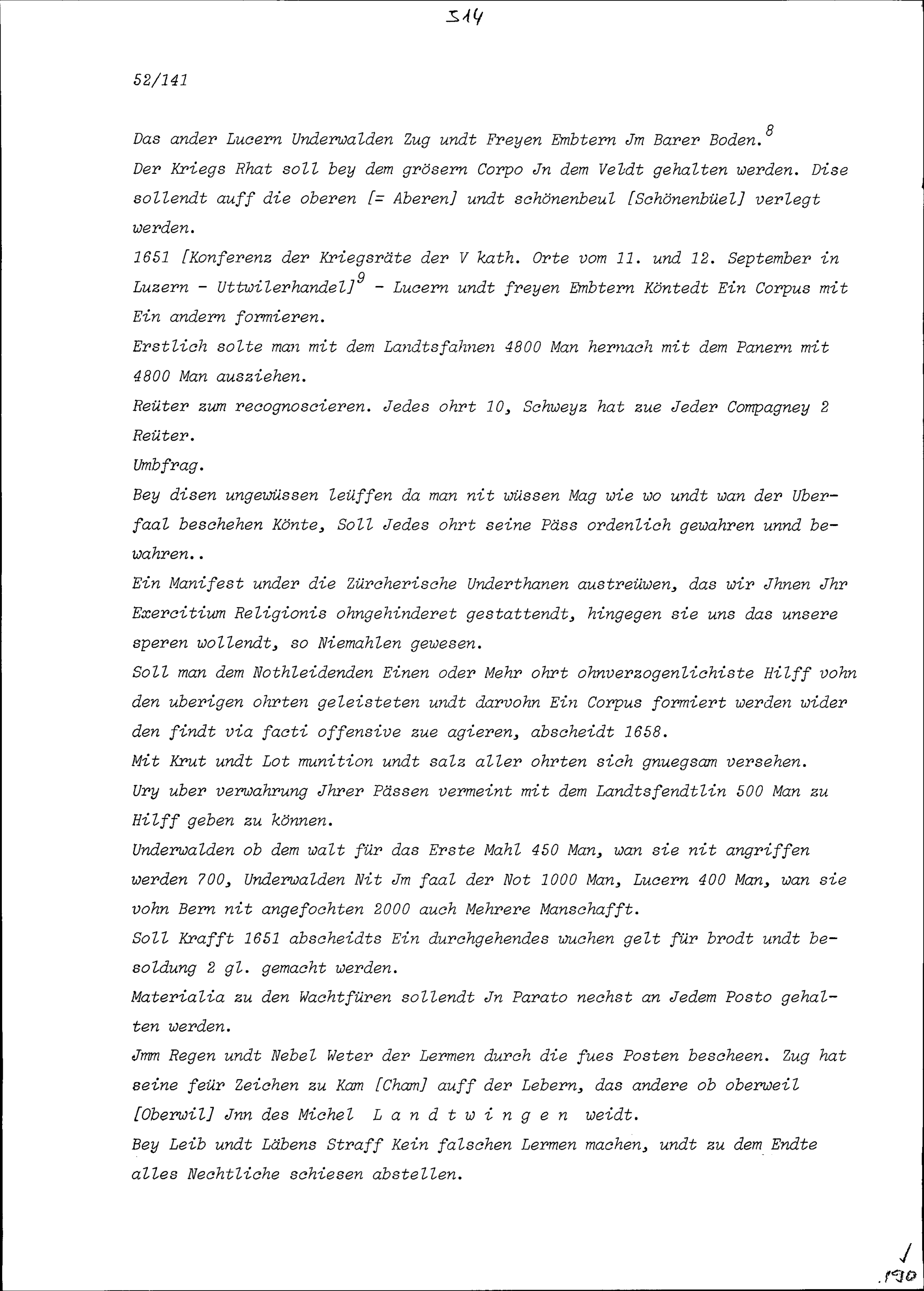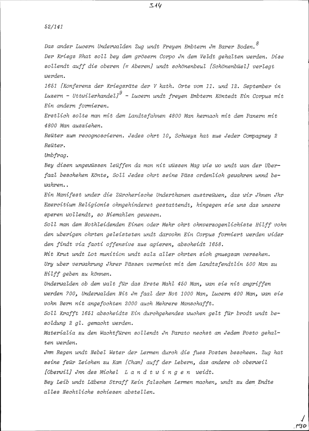 Notiz von Beat Kaspar Zurlauben, Tagsatzungsgesandter von Stadt und Amt Zug, zur Konferenz der Geheimen Kriegsräte der Fünf Katholischen Orte in Weggis