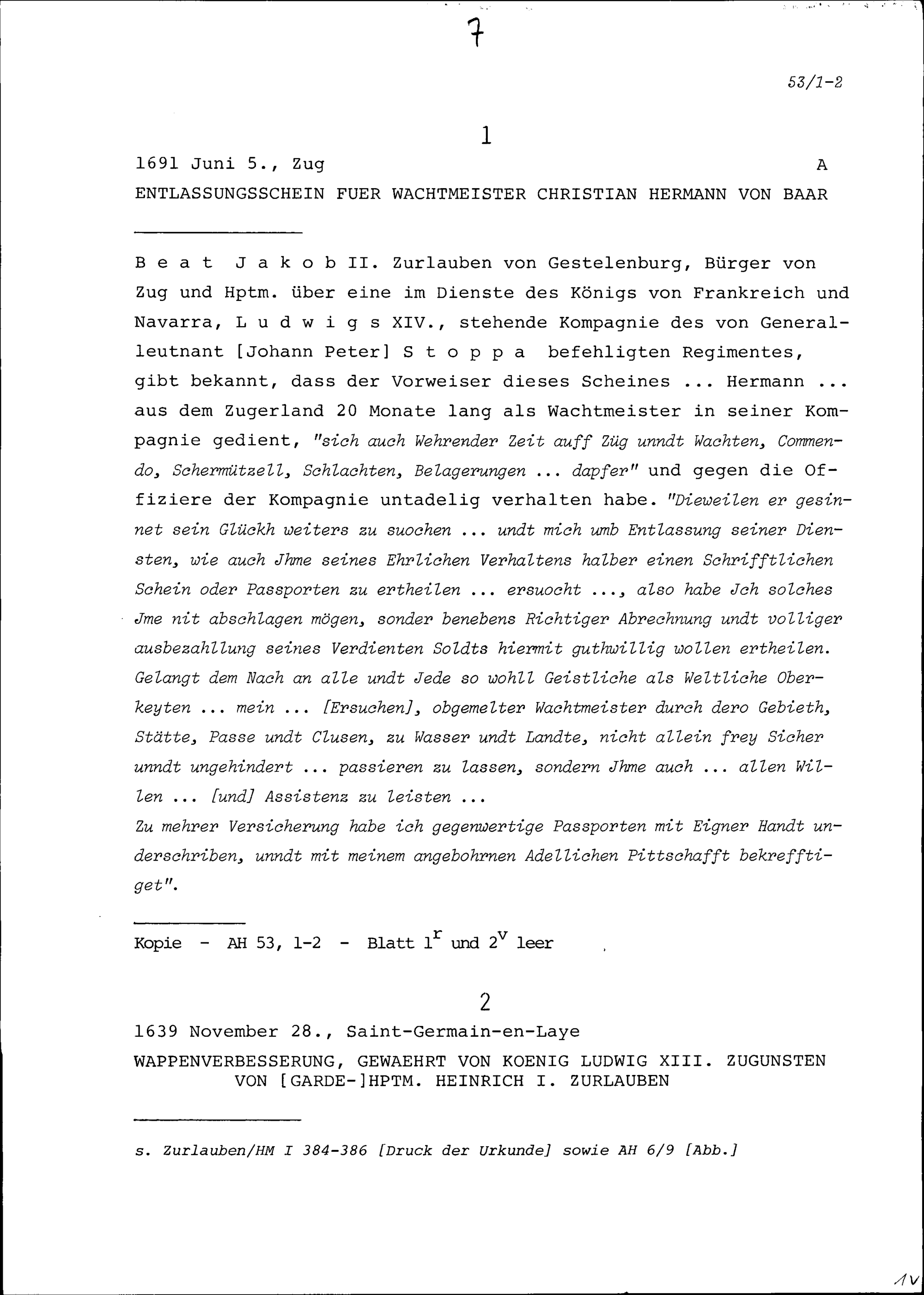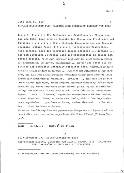 Entlassungsschein für Christian Hermann, Wachtmeister, von Baar