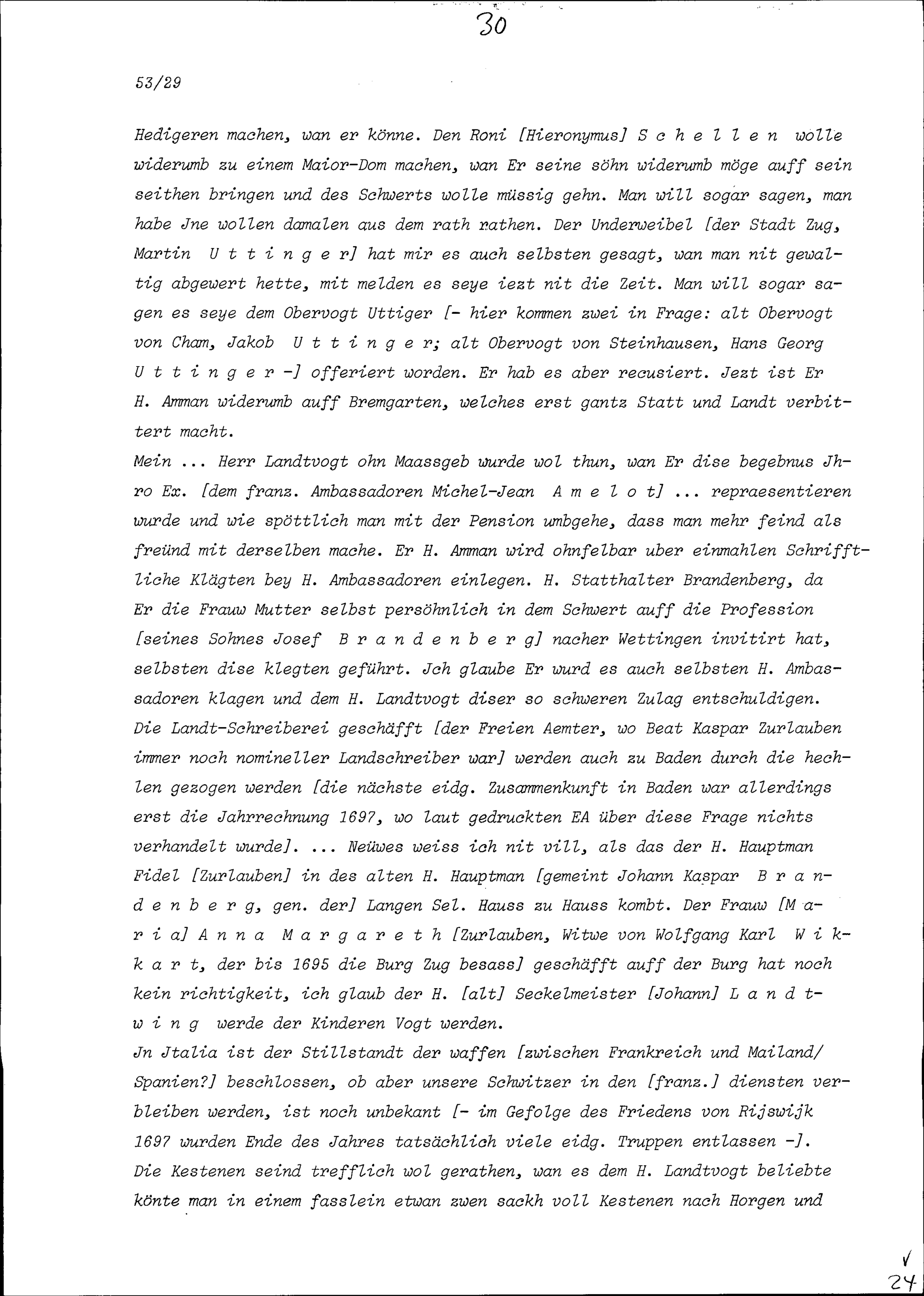 Schreiben von Peter Matthäus Herster, Kaplan der Sakraments- und Rosenkranzpfrund an der Kirche Sankt Oswald, an Beat Jakob II. Zurlauben, Landvogt im Thurgau