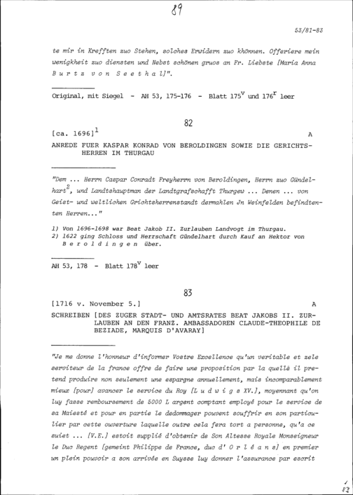 Anrede für Kaspar Konrad von Beroldingen sowie die Gerichtsherren im Thurgau