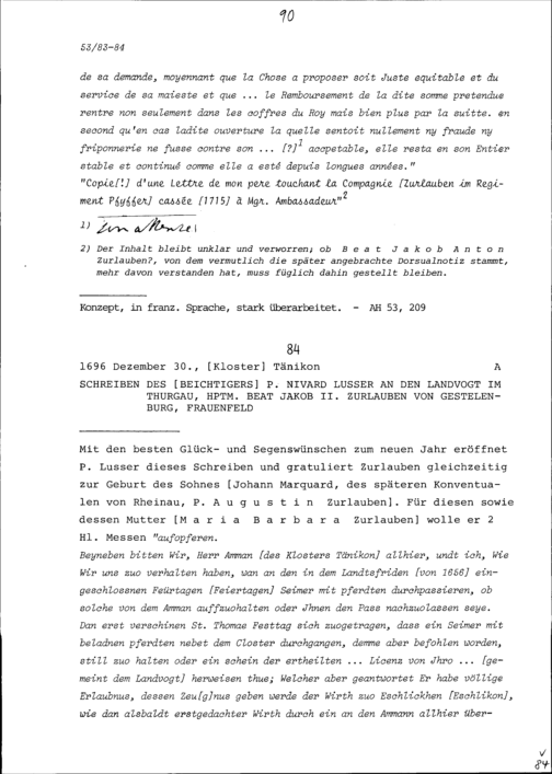 Schreiben von Nivard Lusser, Konventuale und Beichtiger, an Beat Jakob II. Zurlauben, Landvogt im Thurgau und Hauptmann, Frauenfeld