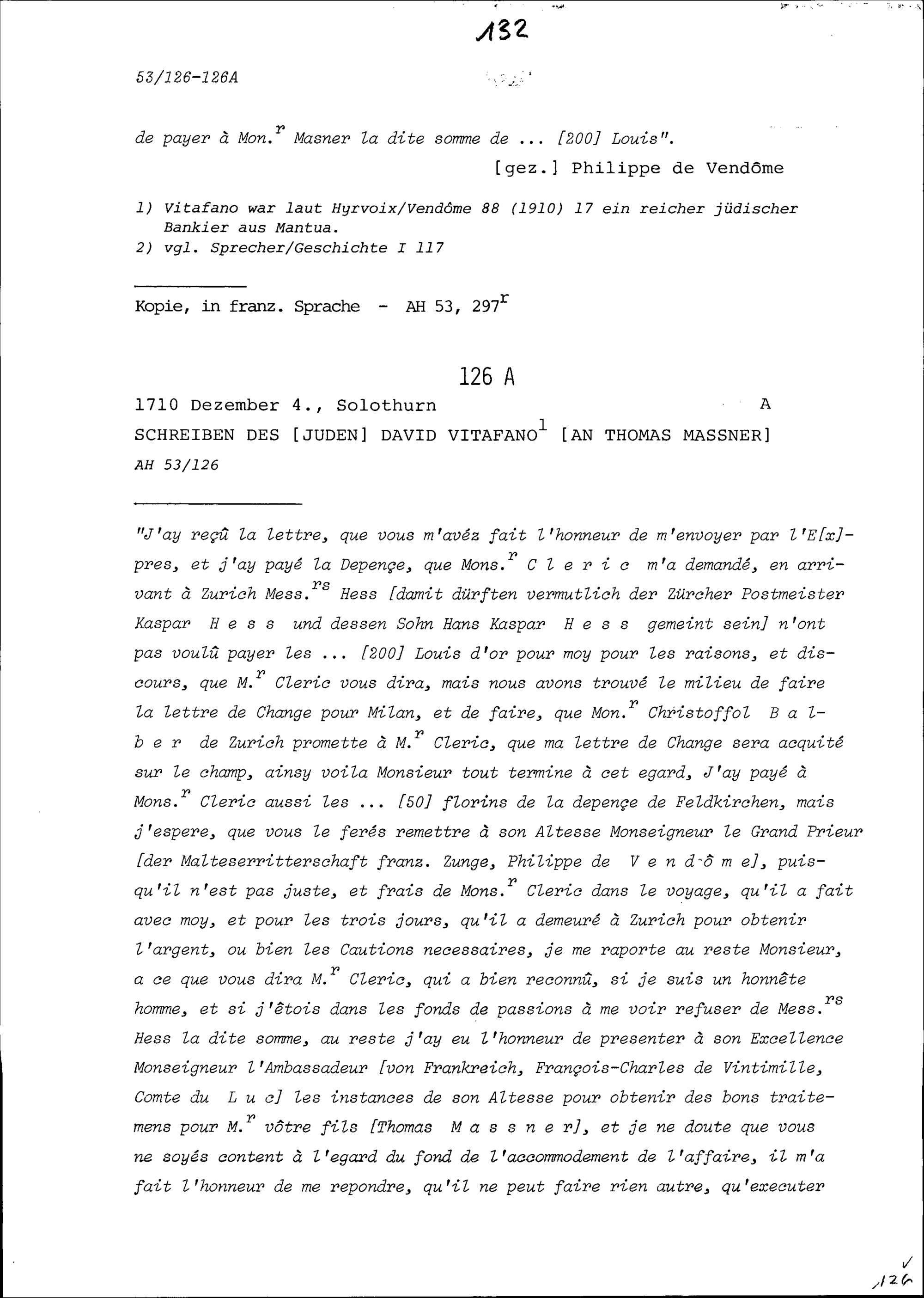 Schreiben von David Vitafano, Jude, an Thomas Massner